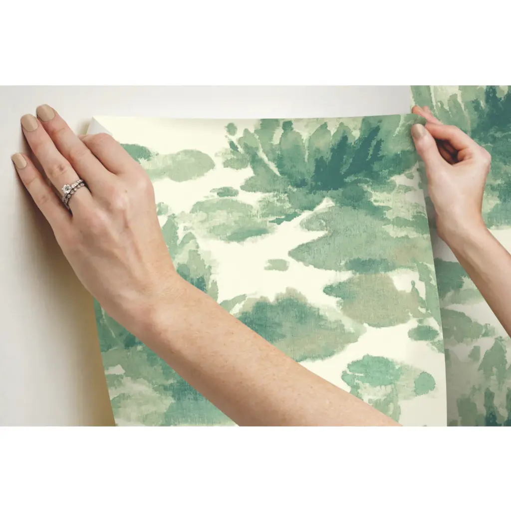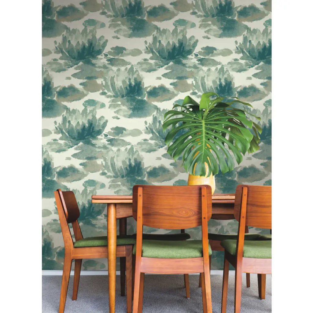 An impressionistic portrayal of overscale blooms in misty hues and metallic accents, this is splendid Water Lily Wallpaper. This Water Lily Wallpaper measures approximately 27 inches wide by 27 feet long, covering About 60.8 square feet per roll. Durable and easy to remove from primed walls, this friendly to hang unpasted nonwoven wallpaper is created with a special blend of synthetic fibers, making it both easy to hang and tear resistant. Unpasted non woven material; 24-in repeat, straight match; Washable and strippable; 27-in by 27-ft long roll; Covers about 60.8 square feet
