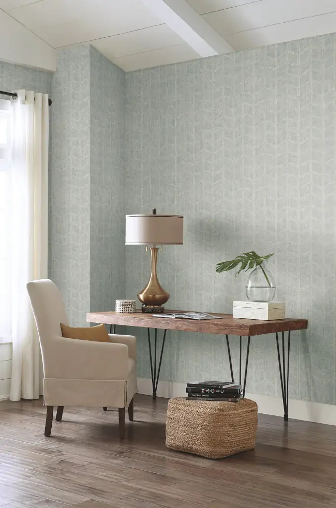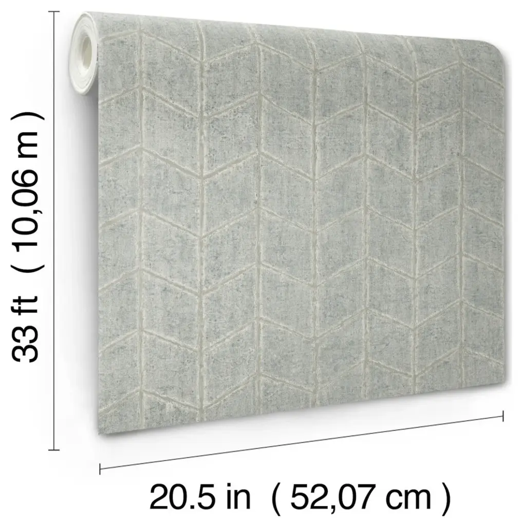 The chevron gets a modern, industrial upgrade when stylized with raised textural plaster relief and metallic in the pattern Flatiron Geometric, shown in gray sky with blue. This Flatiron Geometric Wallpaper measures approximately 20.5 inches wide by 33 feet long, measuring approximately 56.4 square feet per roll. The modern aesthetic of natural form. Unpasted non woven material20.5-in repeat, straight matchWashable and strippable20.5-in by 33-ft long rollCovers about 56.4 square feet