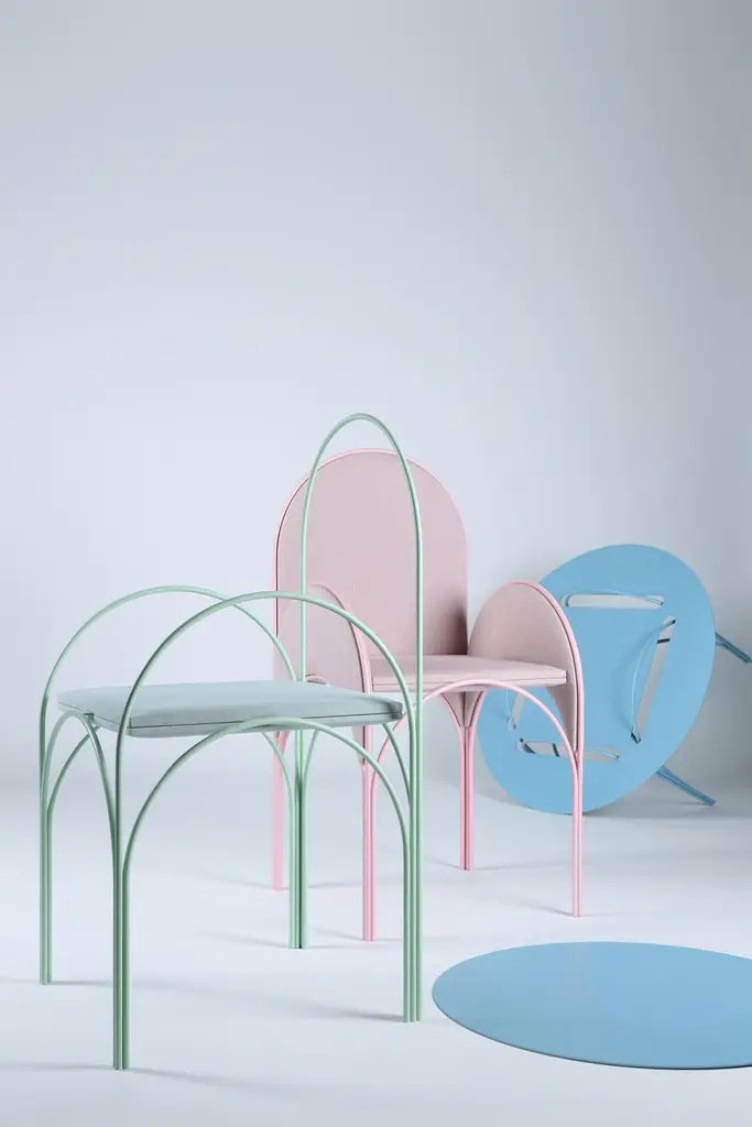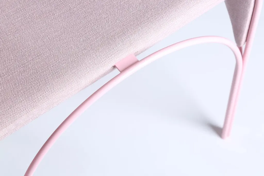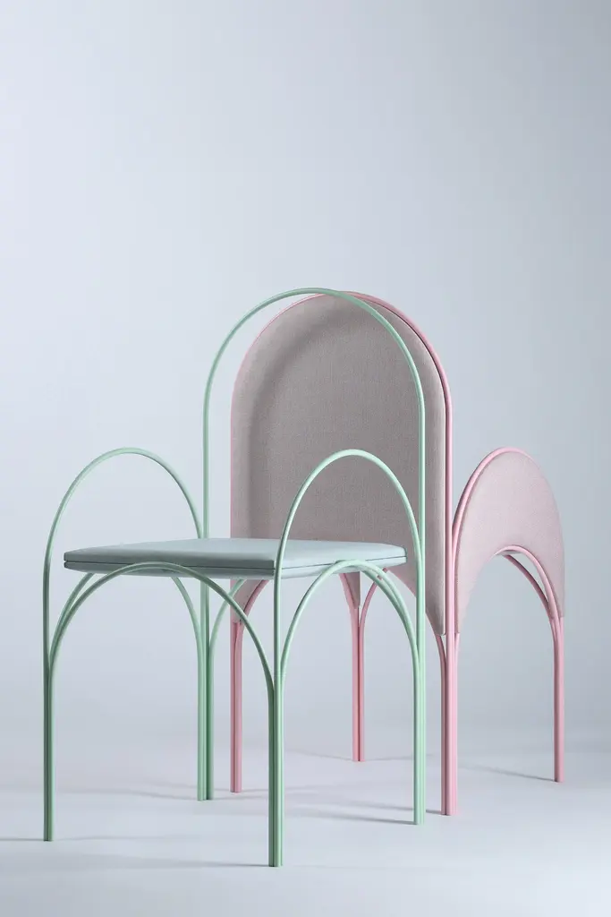 Hawa Beirut naked chair by Richard YasmineMaterials: structure in powder coated metal, fabric upholstery Dimensions: H 92 cm x W 46cm x D 47cmHAWA Beirut, a collection of very light or airy furniture inspired from the Lebanese architecture and specifically the arches that are a trade mark in our cultural heritage.HAWA in Arabic language means a light summer breeze or even a deep love, a passion towards someone or something.Hawa Beirut set up creates a nostalgic yet harmonious reflection to our ancestors, continuing the communication between the past present and the future generations..It is composed of 2 chairs one with upholstery and the other one naked with a low flippable central table / coffee table and a “paravent” or a decorative separation panels including multiple materials, the whole items are made of powder coated colorful steel with fabric, adding decorative handmade silk braiding cords and tassels, with treated pink marble including traditional craftsmanship technique blown stained glass inserts. Richard Yasmine a Lebanese interior architect and product designer, filled with imagination using his imaginary world as a simulation to try out new ideas and create new objects inspired of life, objects and emotions, the human body: physiology and needs, but also focuses on internal chaos combined with a certain innate sensitivity; sometimes extreme and provocative or even not expected by others but still minimal, bold, and straightforward without disguising or hiding true reality. He never tends to identify the difference between reality and imagination this what helps him creating intriguing and controversial design objects yet complicated in the process of production however this is distinctive in his personality.Trying always to incorporate a fresh approach sticking to his culture and tradition, frequently in a muddled process but a precise immaculate result not following any specific period or trend but a reflection of his own image. Integrating the Middle Eastern specifically the Lebanese knowhow and spirit within the recipe of each of his products; collaborating with craftsmen, consequently to reveal the oriental feel through an extravagant aspect, searching to spread the marriage between tradition and new technologies, by keeping his signature identity of commotion mixing craziness to sobriety with a touch of fantasy.He showcased his work at la biennale de St Etienne, Paris design week 2015 , Milan design week 2016/2017/2018 , Beirut artfair 2015/2016 , Beirut design week 2015/2016 ,Dubai design week 2016 and in designjunction during the London design festival 2017, Some of his designs has been featured consecutively in Interni, domus, wallpaper, living-corrieredellaserra, ad, Icon, ideat, elle decoration, monogram, dezeen, designboom, design milk, highsnobiety, the national, Madame, 7daysuae, interiors, Arch newspaper, interior design NEW York, l’orient le jour and many other local and international blogs and magazines … he has been selected by Esquire MIDDLE EAST between the 6 designers to know about in the middle east for 2017 and his work has been featured between the best of Dubai design week 2016 on Yatzer and best of Milan design week 2017 again on Yatzer. He has been interviewed by Elle décor Italia as the Lebanese designer talking about his city Beirut in the “secret Beirut” article as one of numerous other city guides.As for his latest news he showcased in 3 different spaces lately during Milan Design week 2018 and for the first time collaborating with the eclectic Italian brand JCP universe, his latest HAWA Beirut collection and WAKE UP CALL has been selected between the best of MDW18 on Yatzer, yellowtrace, domus, dezeen, designboom and many other press all around the globe, he has been nominated for the emerging designer of the year by Dezeen, lately he revealed his latest work Ô-CULT the water sanctuary , commissioned by the Ministry of Foreign Affairs of Italy curated by la Triennale di Milano design museum, new pieces to be showcased April 2019 during Milan Design Week.