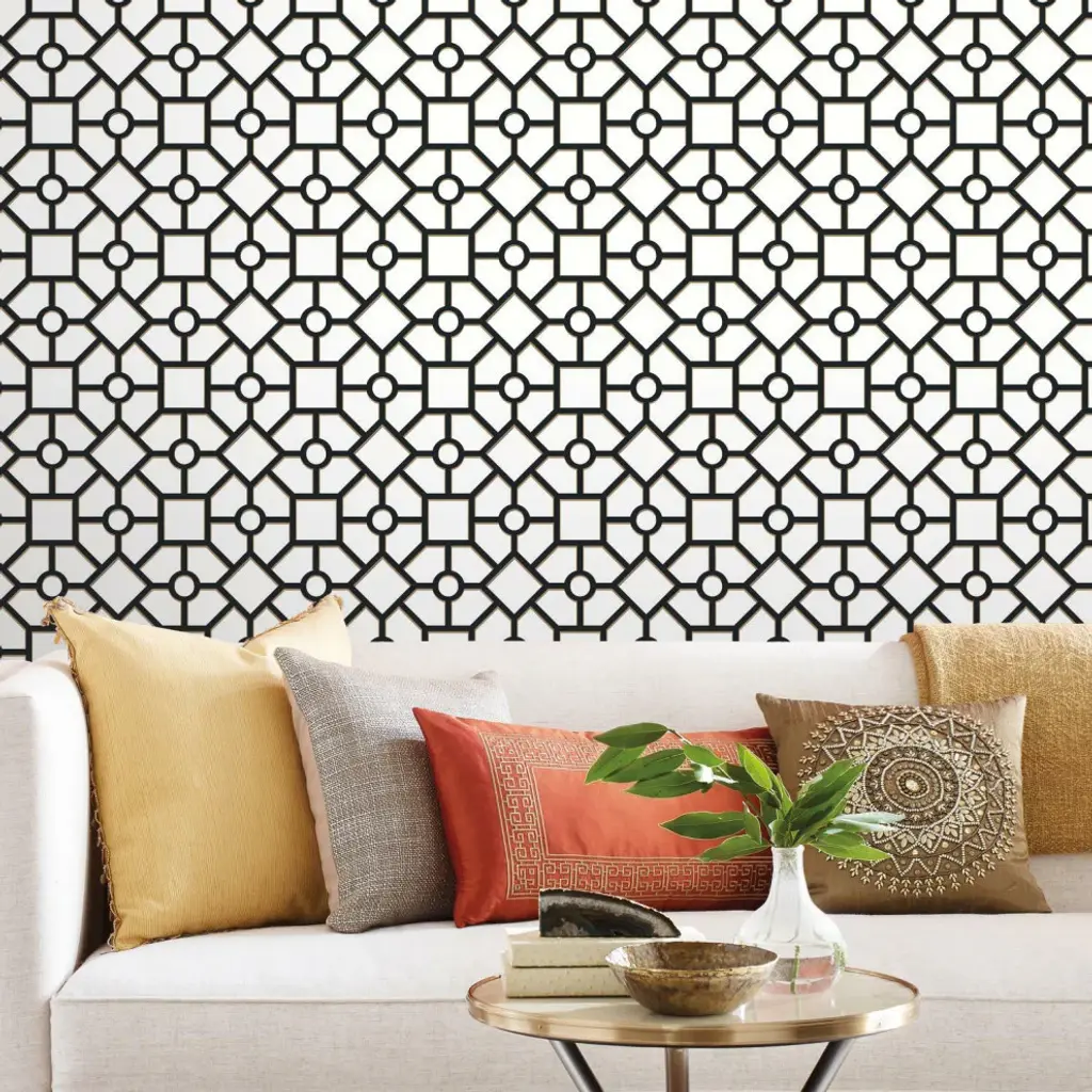 Bring new life to your room with this bold Hedgerow Trellis. This Hedgerow Trellis Peel & Stick Wallpaper measures approximately 20.5 inches wide by 20 feet long, covering About 34.2 square feet per roll. This product is a superior luxury non-woven peel and stick wallpaper, which removes easily in full strips without damage to surfaces. Peel & Stick non woven material; 10.25-in repeat, straight match; Washable and fully removable; 20.5-in by 20-ft long roll; Covers about 34.2 square feet