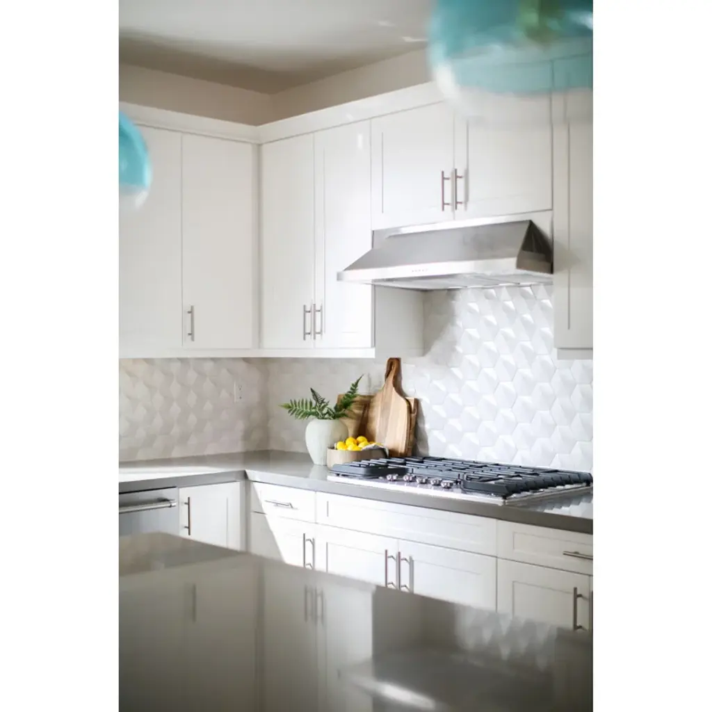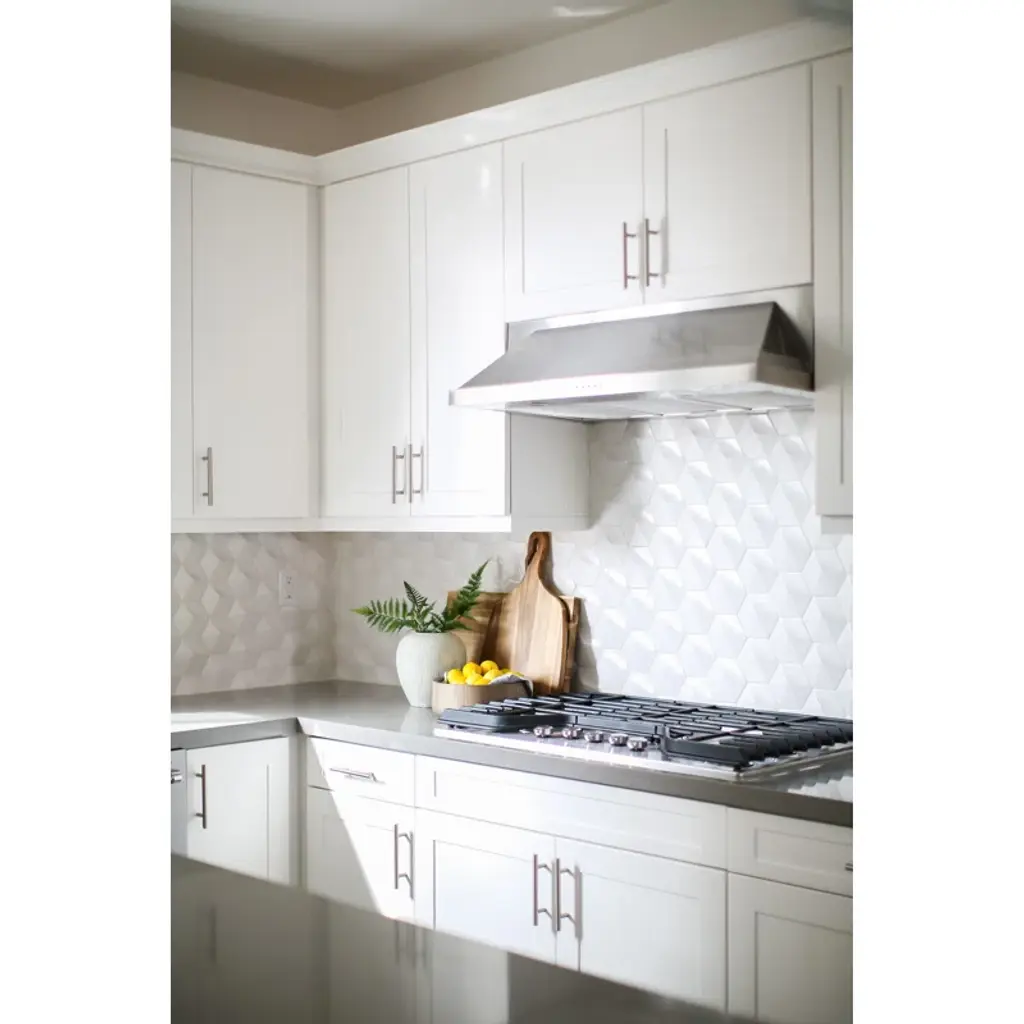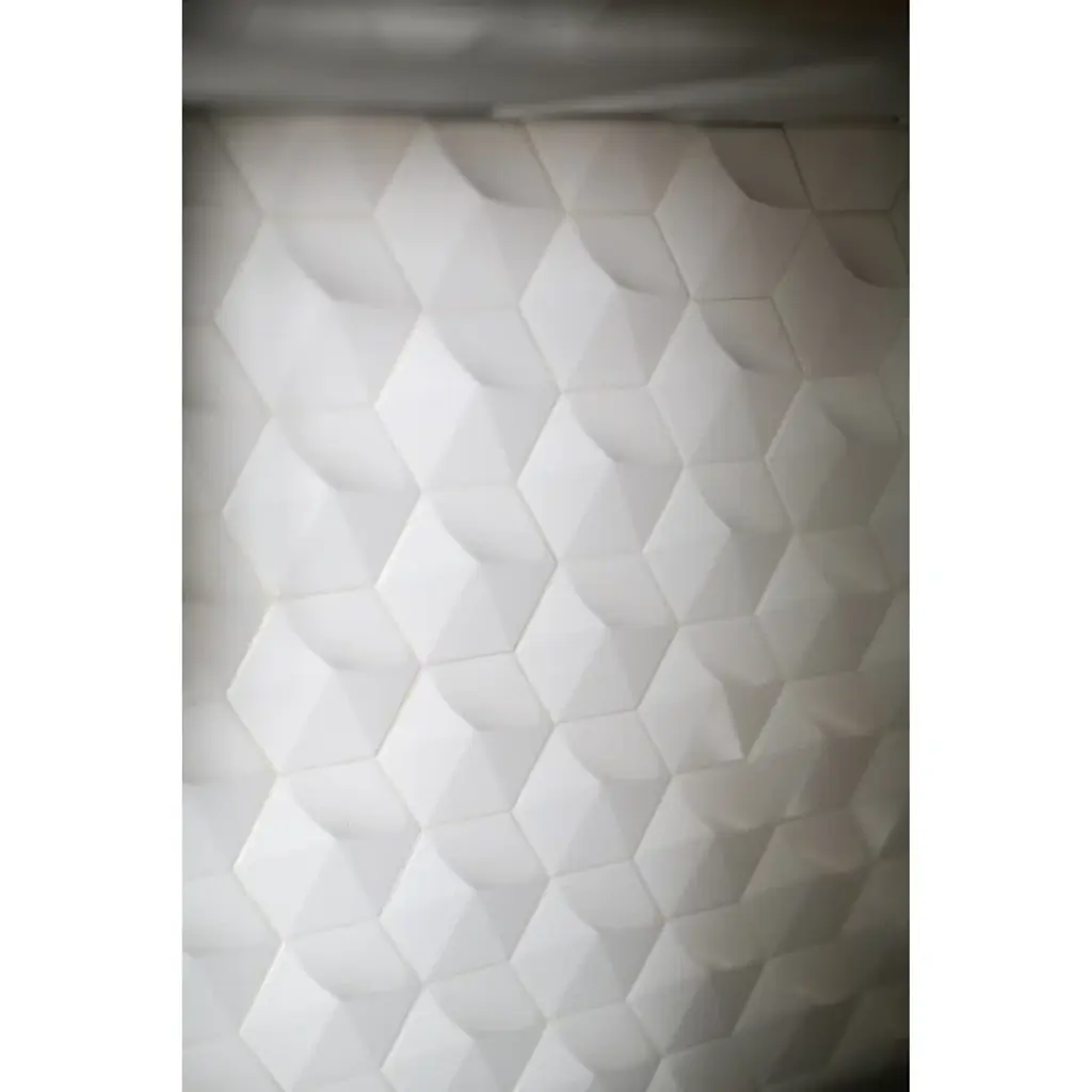 Add extra dimension to your walls with this textural wallpaper. Made from ceramic, these tiles strike a hexagonal silhouette for a honeycombed effect on your walls. The center of the tiles are pointed outward to create stylish shadows in your space. Even though they're pointed, the glossy finish makes them easy to clean. #score. You probs shouldn't walk on these tiles, but they look great as a backsplash, or kitchen and bathroom walls. These tiles measure 5'' W x 4'' L and are sold in cartons of 36.