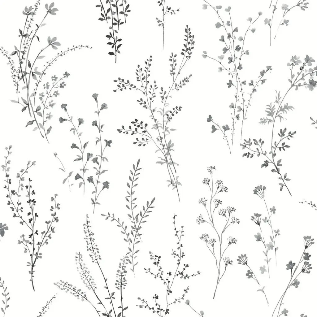 Herbario Designer Wallpaper In Cinder 'Black And White'