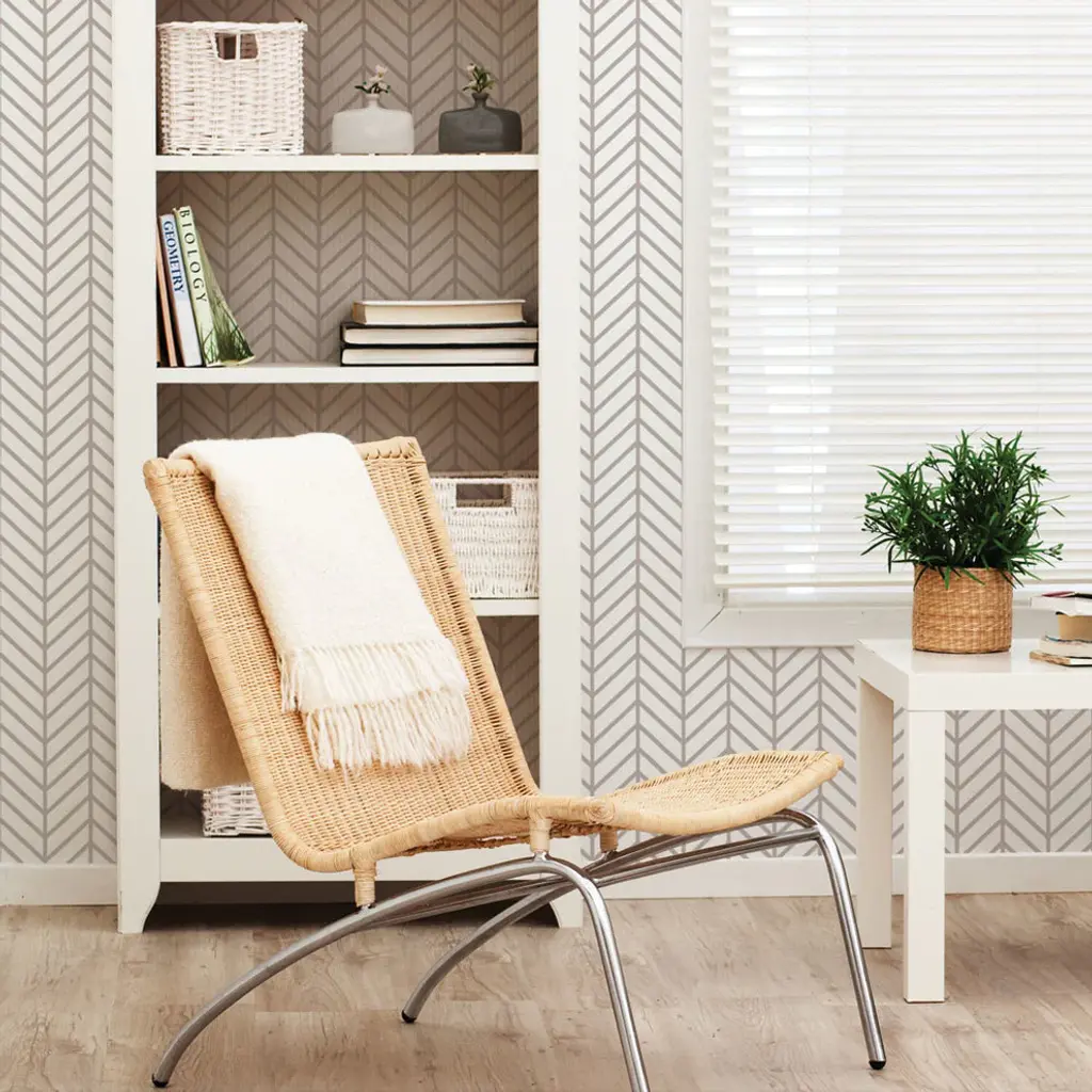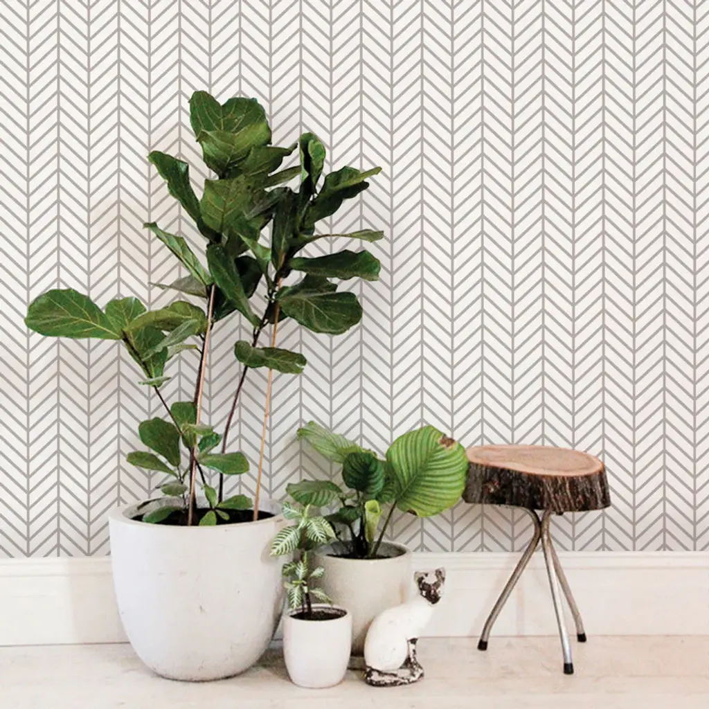 Herringbone Line Peel And Stick Vinyl Wallpaper , Warm Gray, 24"w X 108"h