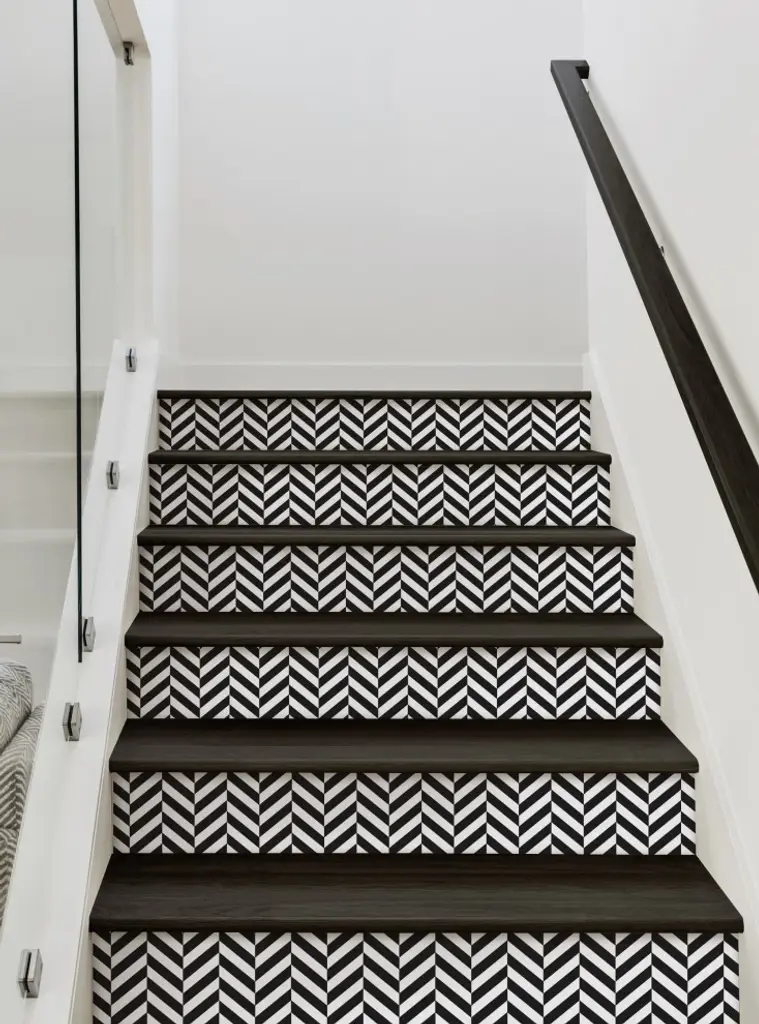 Herringbone Solid Peel And Stick Stair Riser Strips, Black, 48"w X 7"h, 6 Pack