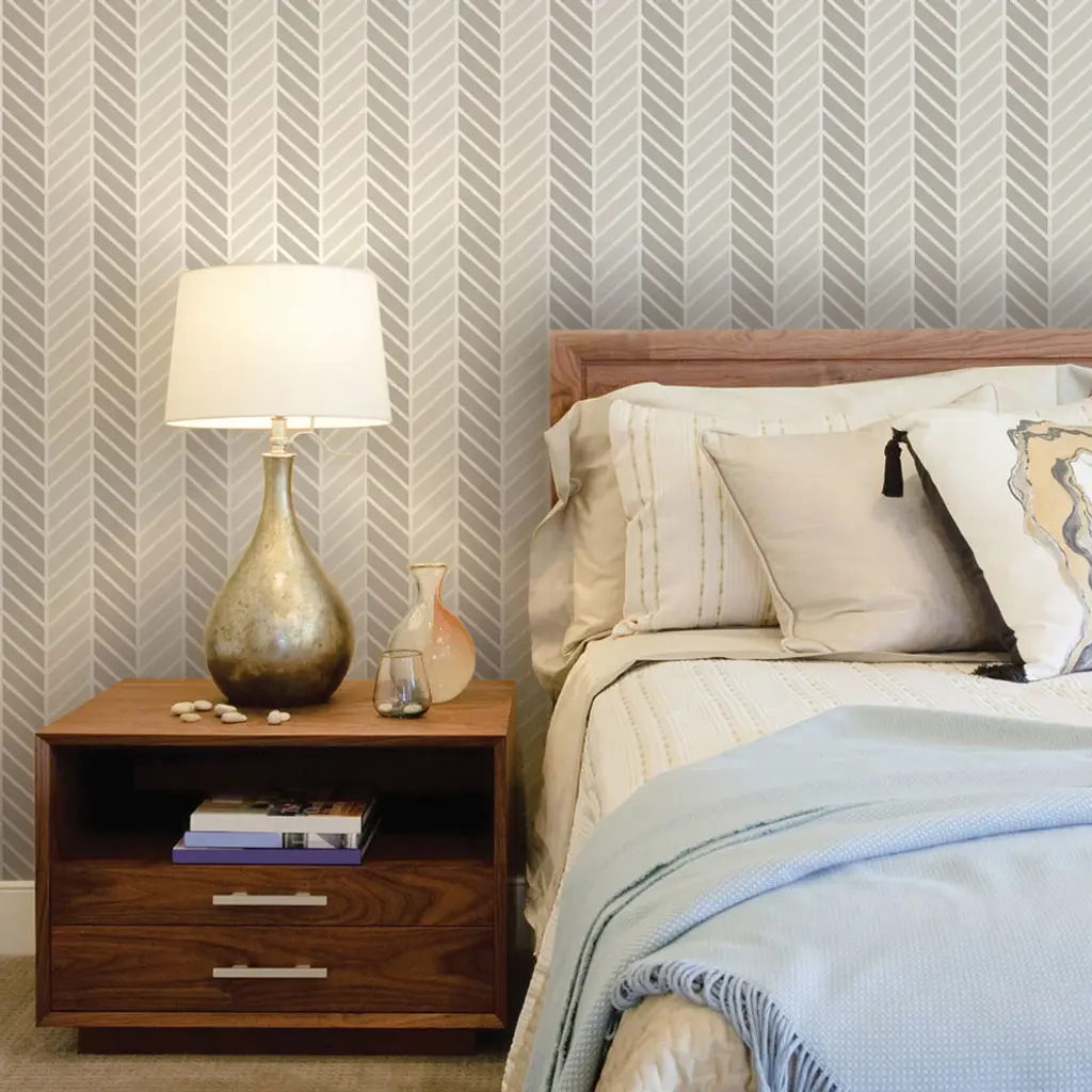 Herringbone Two Tone Peel And Stick Vinyl Wallpaper, Warm Gray, 24"w X 108"h