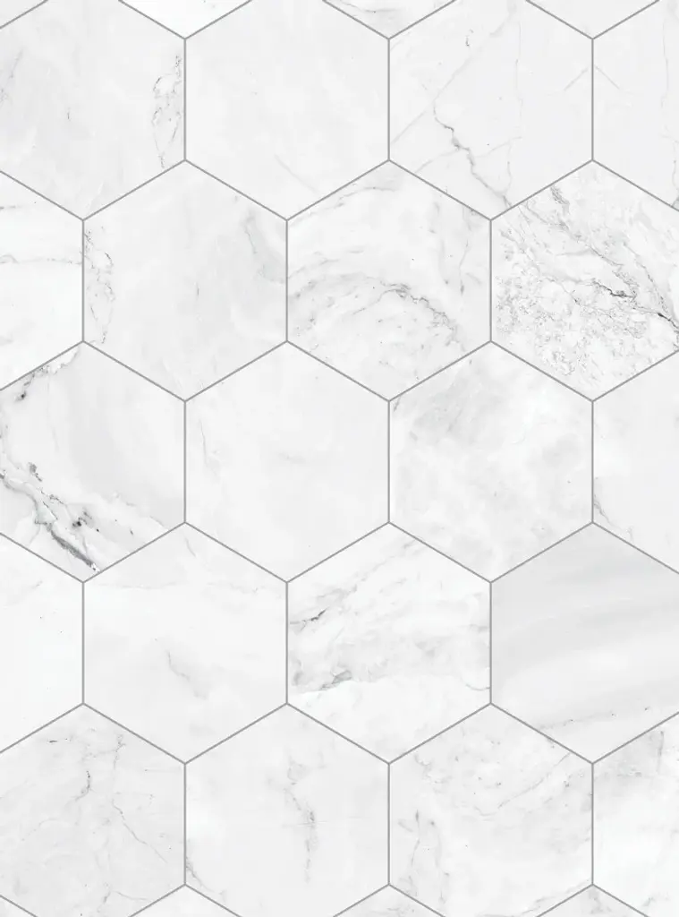 Hexagon Marble Small Peel And Stick Vinyl Wallpaper, Grey, 24"w X 60"h