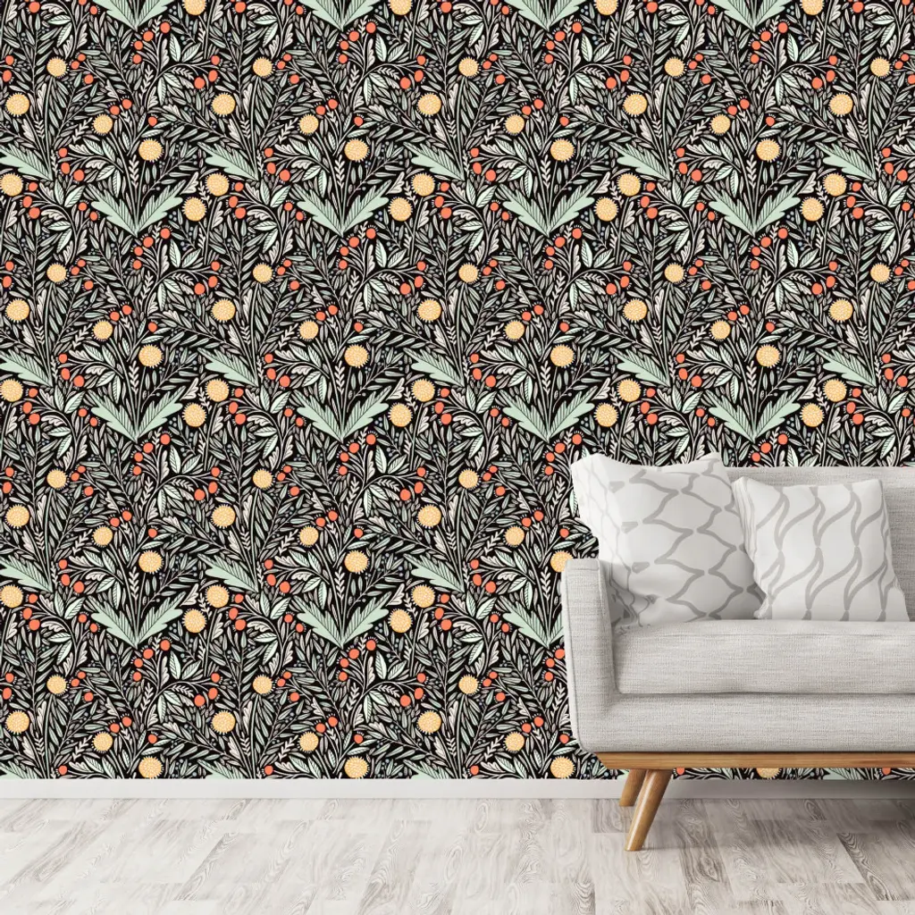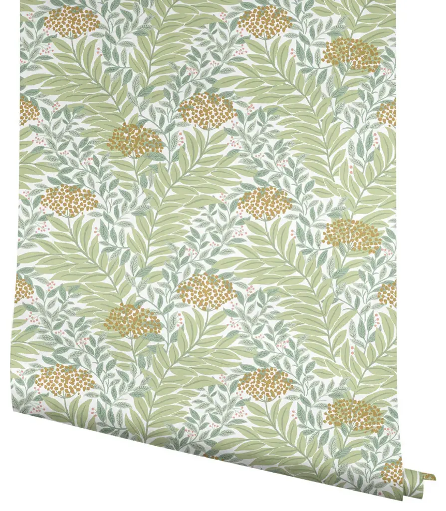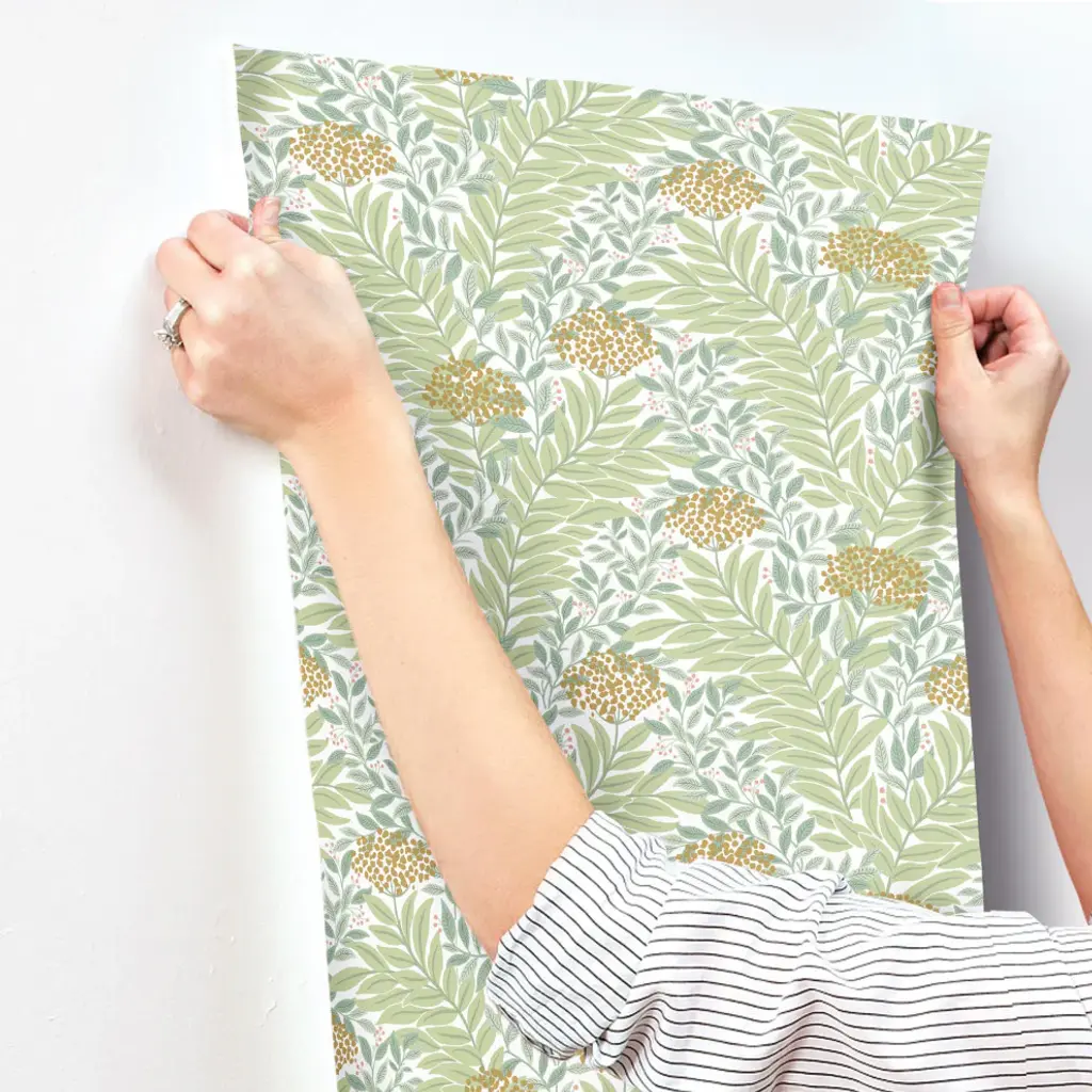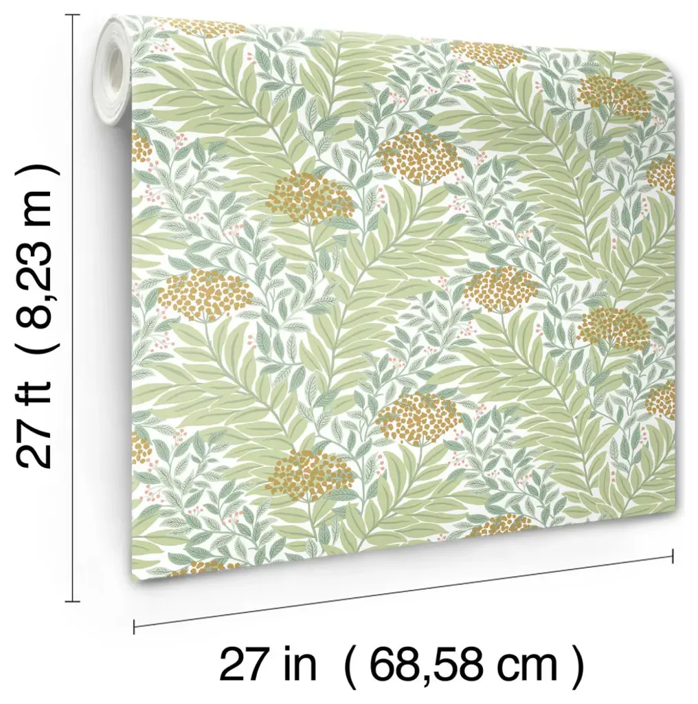 Sprays of terracotta red Queen Anne''s Lace accent layers of lush, leafy green flora offset against a cool white backdrop in design Highgrove. This Highgrove Wallpaper measures approximately 27 inches wide by 27 feet long, measuring approximately 60.8 square feet per roll. The world of Rifle Paper Co. is in full bloom with their third wallpaper collection. With statement floral prints, detailed illustrated designs, and metallic accents, this collection is designed to bring beauty to every room. Unpasted non woven material; 12.625-in repeat, straight match; Washable and strippable; 27-in by 27-ft long roll; Covers about 60.8 square feet