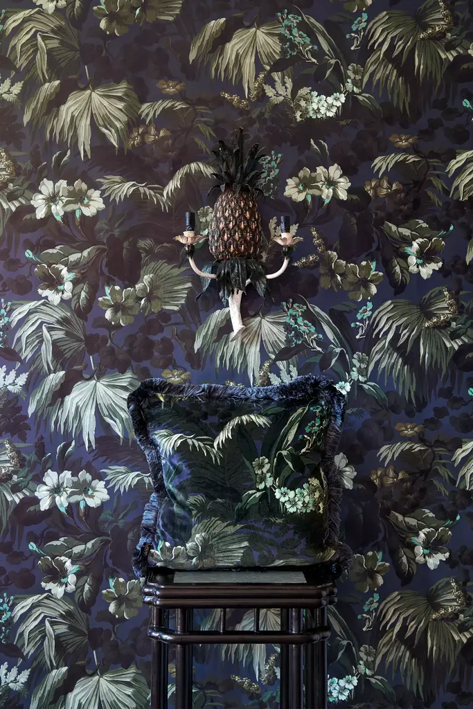**All sales are final, no returns accepted** Part of the innovative 'Climbing Walls' collection by House of Hackney, this wallpaper reimagines one of the brand's most beloved prints, 'Limerence', as painterly border- its tropical flowers and foliage reaching up towards and 'Ink' blue sky, evoking the deepest jungle at nightfall. Founded by Frieda Gormley and Javvy M Royle in 2011, House of Hackney is the British interiors brand renowned for ripping up the rule book and dreaming up iconic prints inspired by the world we live in. As design rebels with a cause, the House has spearheaded a renaissance for painterly prints and exquisite colour, while championing traditional craftsmanship and eco-friendly production.* PVC free* Print method: Digital* Hanging method: Paste the wall#### *Dimensions** Roll: W: 5'8 x H: 9'10* Single roll comprising of 4 x 9' 10' lengths, each 1'5 wide. Wall coverage per roll is 58' 10".**This is not a continous roll**