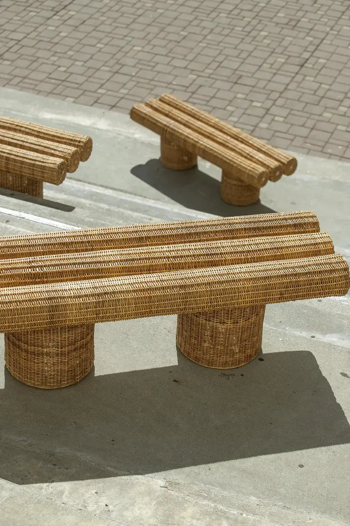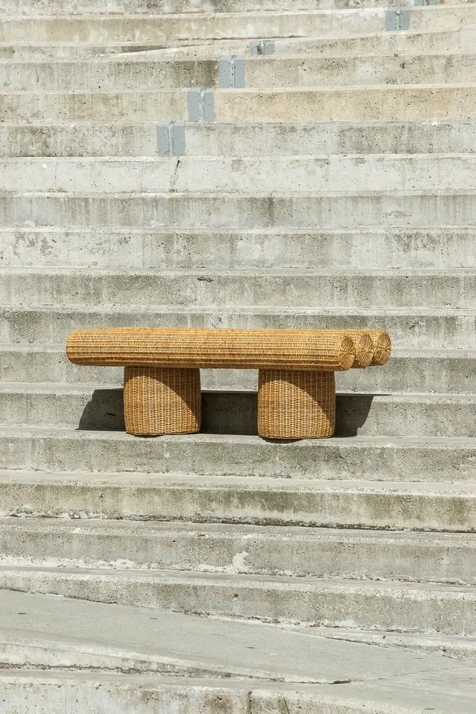 Ibuju 03 Large Bench in Colombian Woven Yaré Natural Fiber by Fango StudioDimensions: D 45 x W 200 x H 43 cm. Materials: Colombian woven yaré natural fiberAvailable in different size options. Prices may vary. Please contact us.Starting from the idea of a “primitive” object as it is a built piece of furniture from wooden logs and the problem of cutting down trees, the proposal is to take advantage of a renewable material such as “Yaré”, there Ibuju is born, a bench made out of this natural fiber, rethinking the design and the manufacturing of native wooden pieces using new and sustainable materials.Francisco Jaramillo (b. Medellin) is an award-winning Colombian designer who turns to local materials for his furniture, resulting in pieces that are uniquely Colombian. In collaborating with local artisans and imparting his knowledge of process and material through teaching, he has helped shape a design culture that does not derive its methods solely from Western or international influences.Growing up in Medellín, Jaramillo was always looking to the sky to derive shapes from cloud forms, and today, his design continues to be inspired by his surroundings, turning to local materials rooted in place. After finishing his university studies, the designer traveled to Barcelona to specialize in furniture design at ELISAVA, working with designers who influenced his work with local materials. Upon returning home to Colombia, he launched Fango, which explores the relationship between man, context, and object, combining technology with artisanship to craft collectible furniture driven by a clear narrative.As a result of his close work with artisans, Jaramillo began studying local materials, developing the Ibuju collection, which rethinks the design and manufacturing of native wooden pieces using a natural, renewable fiber called “Yaré”. The Ibuju stool earned Jaramillo a 2023 Wallpaper Design Award in the “Best New Weaves” category. The designer has also participated in design weeks around the world, including Dutch Design Week, Wanted Design, Abierto Mexicano de Diseño, and Medellin Design Week.