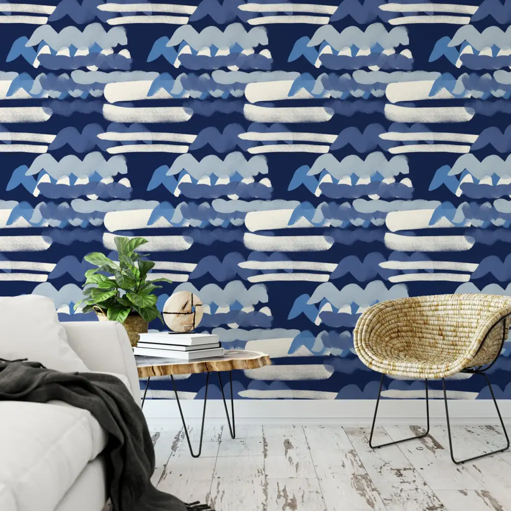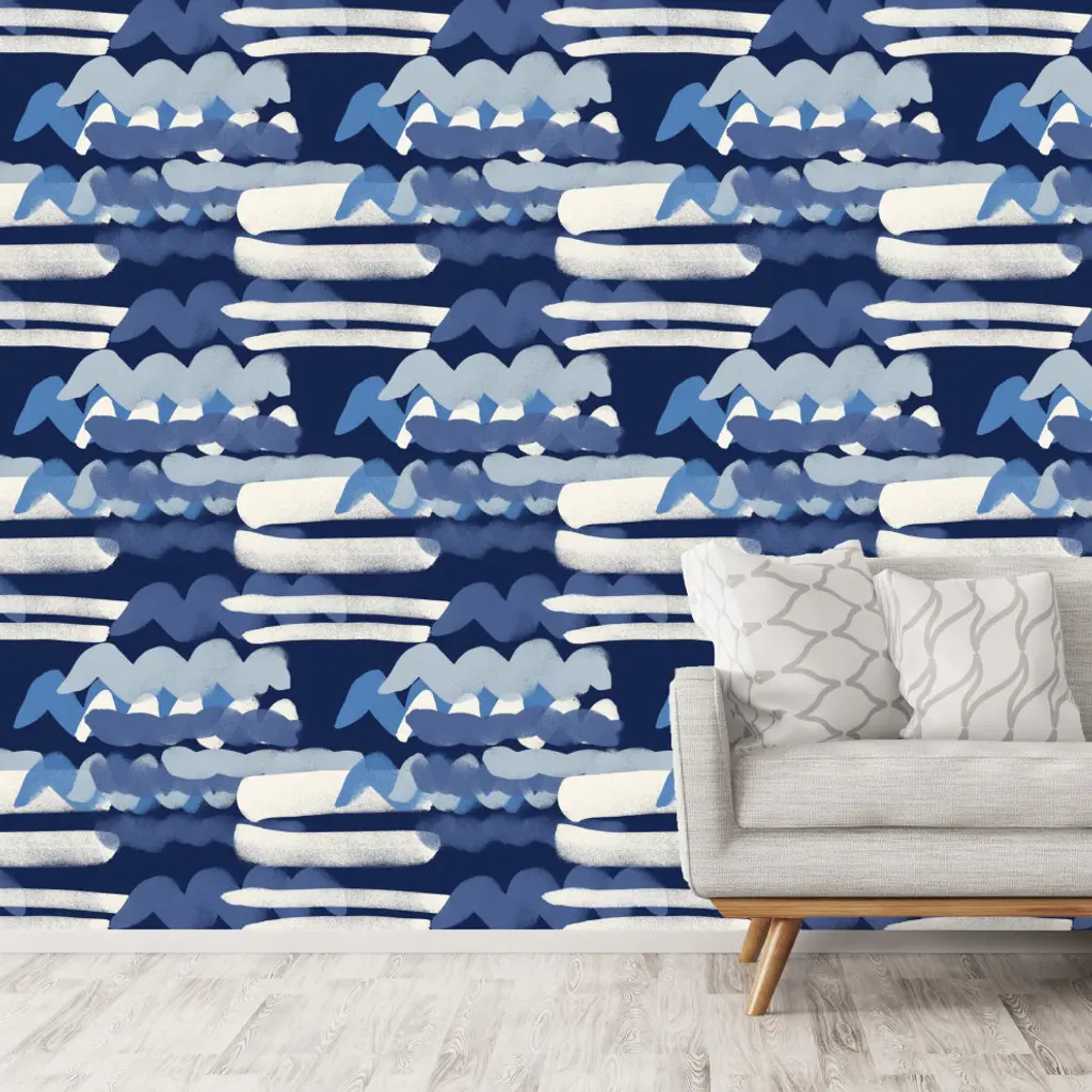 Indigo Beach Waves Wallpaper By Julia Schumacher, 24"x72"