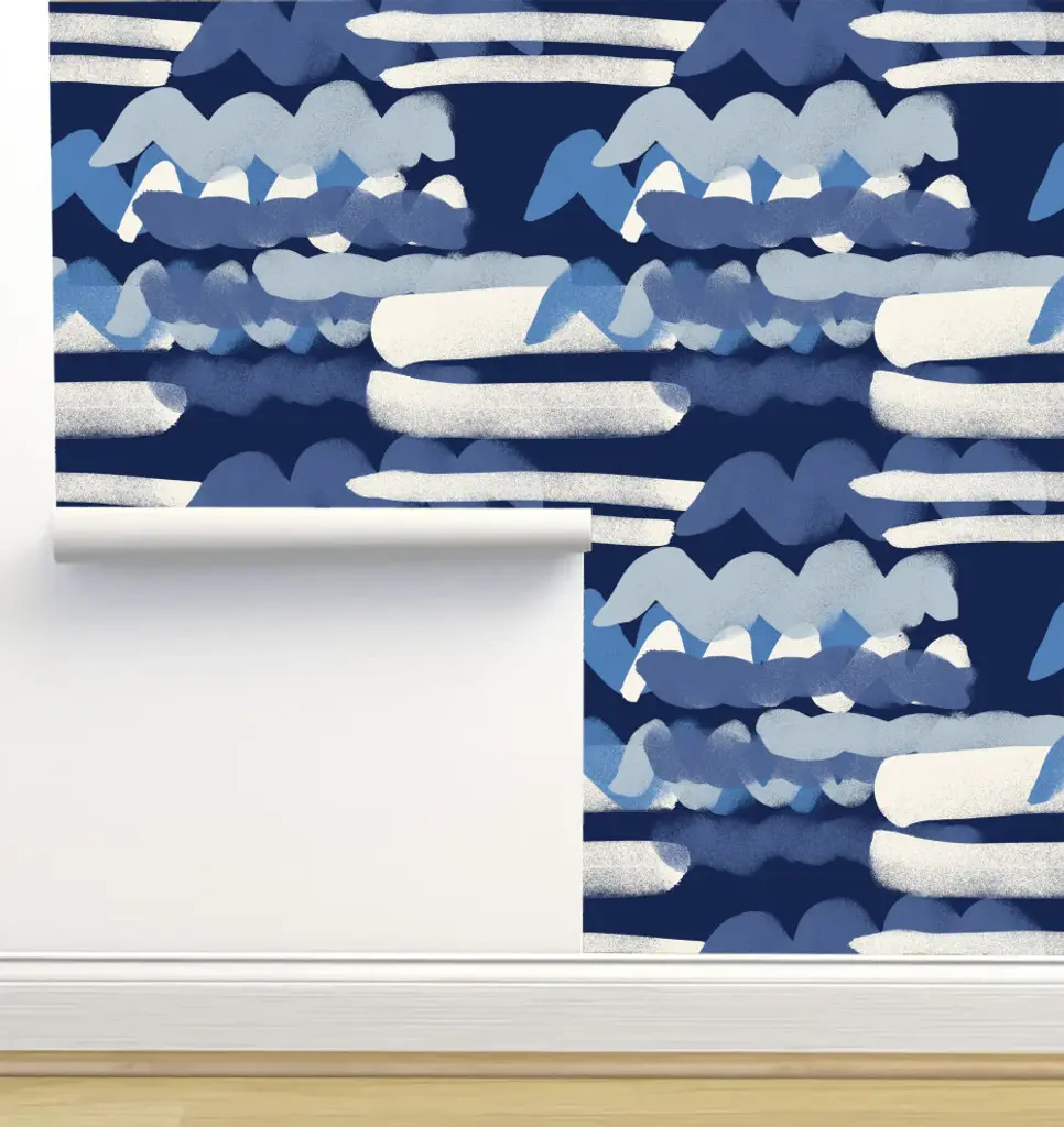 Each roll of wallpaper is custom printed to order and has a fixed width that covers 24 inches of wall space. Peel & Stick Fabric Wallpaper - Removable and Repositionable! Limitless Walls Fabric Peel and Stick wallpaper is a woven polyester fabric with an adhesive backing. Limitless Walls fabric is not like everyone else"™s, ours is the thickest most durable and easiest to install. You won"™t be able to find this anywhere else since we make it ourselves!• 100% opaque white polyester woven with adhesive backing• Eco-friendly and formaldehyde-, phthalate-, and PVC-free• To install, simply peel and stick• Easily removable and repositionable IMPORTANT NOTE Our wallpapers are not recommended for application over paints advertised as being stain-resistant or washable. These paints are crafted to prevent things from sticking -- including wallpaper. If in doubt, you can use Zinsser Gardz which is a clear primer that you can apply right over your current paint. If your wall has been recently painted, allow at least 2+ weeks for the paint to cure before applying wallpaper. Applying wallpaper over uncured paint can lead to bubbling. Our wallpaper will not stick to cement or textured walls.We highly recommend ordering a test swatch before committing to full rolls. While we have done our best to accurately represent the color and scale of this design, computer monitors aren''t the best way to determine how a printed color will look in person. It''s possible that the finished product may be slightly different than it appears in the preview. It is also important to test the adhesive on your unique surface.CARE INSTRUCTIONS:Gently wipe down with a damp cloth, soft cleaners such as dish soap can be used. The use of heavy cleaners or heavy rubbing can cause color to lift.Original Design by Julia Schumacher.