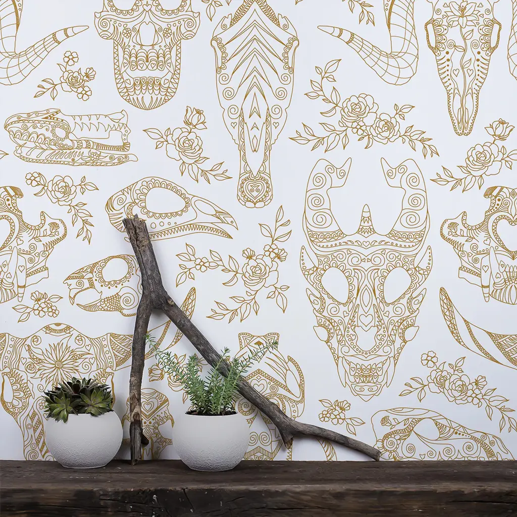 Celebrating the art and culture of both East and West, this tattoo wallpaper brings animals from the Chinese zodiac to life as Day of the Dead characters. As bold as it is creative, this design adds a striking accent to any space and beautifully complements more minimalist interiors. Alternatively, you can go all out and use this tattoo wallpaper in a room filled with eclectic designs and ornamental objects. Made by Detroit Wallpaper in the USA, Inked is high-quality and crafted from non-woven, matte paper with water-based inks. Easy to hang, the wallpaper is also easy to strip away when needed. This product is available in different sizes, to suit any space.