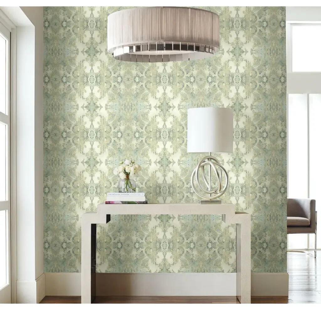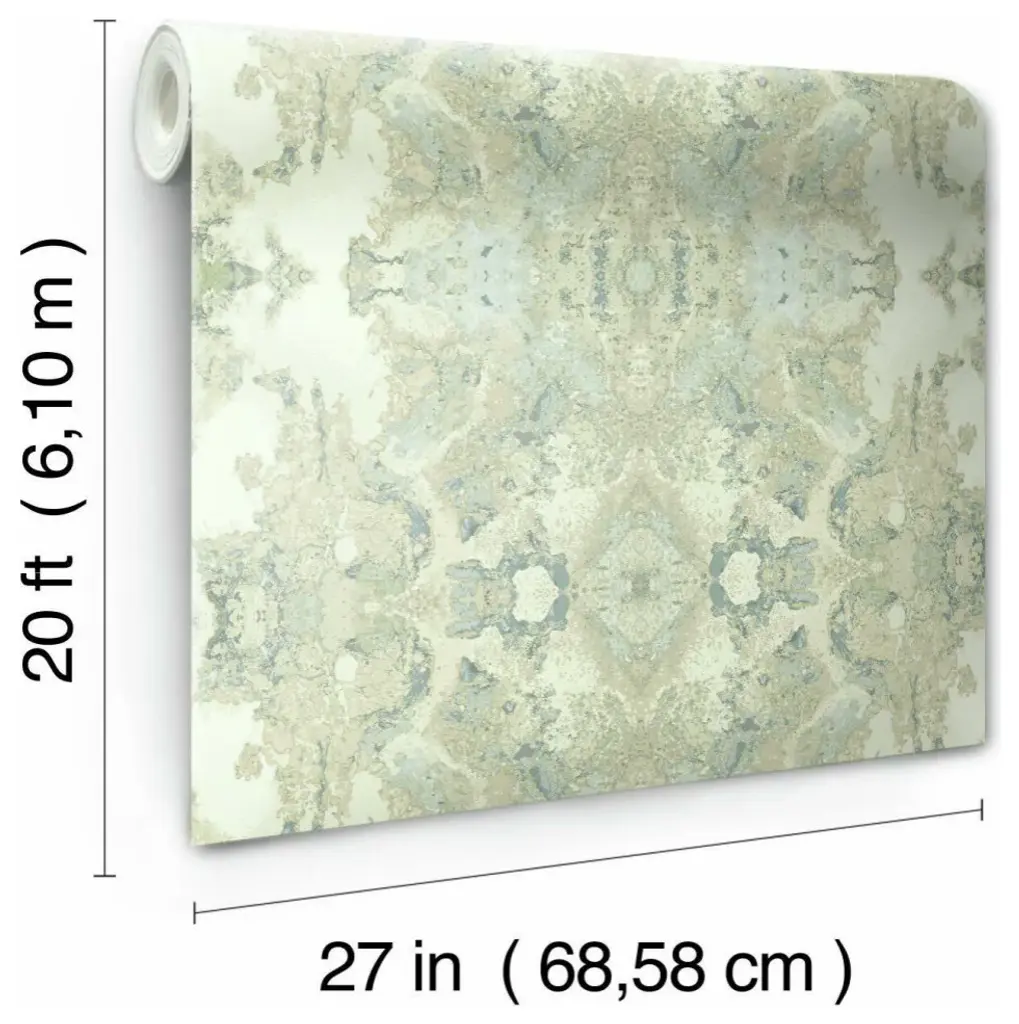 This product is a superior luxury non-woven peel and stick wallpaper, which removes easily in full strips without damage to surfaces. The kaleidoscope images of pattern Inner Beauty showcase the hidden beauty disovered at the heart of natural geodes. The word kaleidoscope itself derives from Greek origins, whose meaning is" obeserving beautiful forms". Includes 1 roll - 27 in x 20 ft = 45 sq ft with a straight match and 20.5 in repeat.
