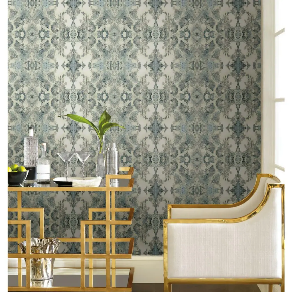 This product is a superior luxury non-woven peel and stick wallpaper, which removes easily in full strips without damage to surfaces. The kaleidoscope images of pattern Inner Beauty showcase the hidden beauty disovered at the heart of natural geodes. The word kaleidoscope itself derives from Greek origins, whose meaning is" obeserving beautiful forms". Includes 1 roll - 27 in x 20 ft = 45 sq ft with a straight match and 20.5 in repeat.
