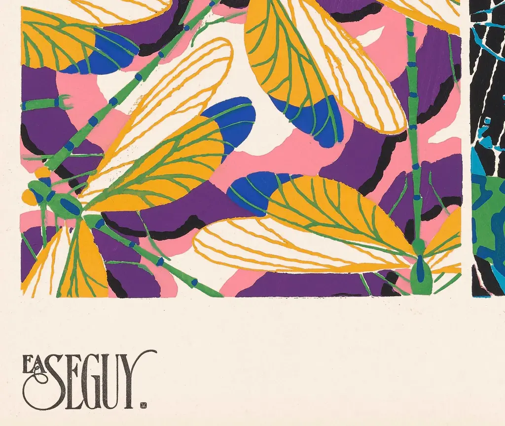 We are thrilled to present the exquisite Séguy Insects #17, available exclusively on Chairish, in the standard 14x18-inch size from CFA Editions. This offer features a beautifully crafted giclée reproduction, printed at ultra-high resolution on premium, acid-free, textured cotton rag paper imported from the renowned St. Cuthberts Mill in Wells, located in the southwest of England. With a legacy of papermaking dating back to the 1700s, St. Cuthberts Mill is celebrated for its exceptional craftsmanship. Printed using archival inks with a lightfastness rating of 200 years, this artwork guarantees vibrant, lasting colors, making it the finest reproduction available. Each print is designed to capture the essence of an original antique, complete with the character and charm of aged details. From the darkened edges that evoke years of handling and study to the subtle specks and imperfections of the original, this reproduction preserves the timeless beauty of its historic inspiration. The artist behind this masterpiece, Émile-Allain Séguy, was a French designer and artist celebrated for his groundbreaking contributions to the decorative arts and pattern design during the Art Deco period. Born on September 22, 1877, in Paris, France, and active until his passing in 1937, Séguy was a pioneer in blending natural motifs with geometric patterns and bold, vibrant colors. Séguy’s most iconic work, Insects, is a stunning series of illustrations that meticulously depict different insects in symmetrical, visually captivating compositions. His extraordinary ability to capture the essence of nature in intricate patterns and rich palettes solidified his reputation as a master of Art Deco design. Over his prolific career, Séguy applied his talents to wallpapers, textiles, book covers, and decorative arts, often inspired by the flora and fauna that defined his unique artistic vision. Séguy’s legacy continues to influence artists and designers, with his work celebrated for its creativity, sophistication, and timeless appeal. Be sure to explore our other listings to discover the complete series of 20 stunning images from Insects by Émile-Allain Séguy.