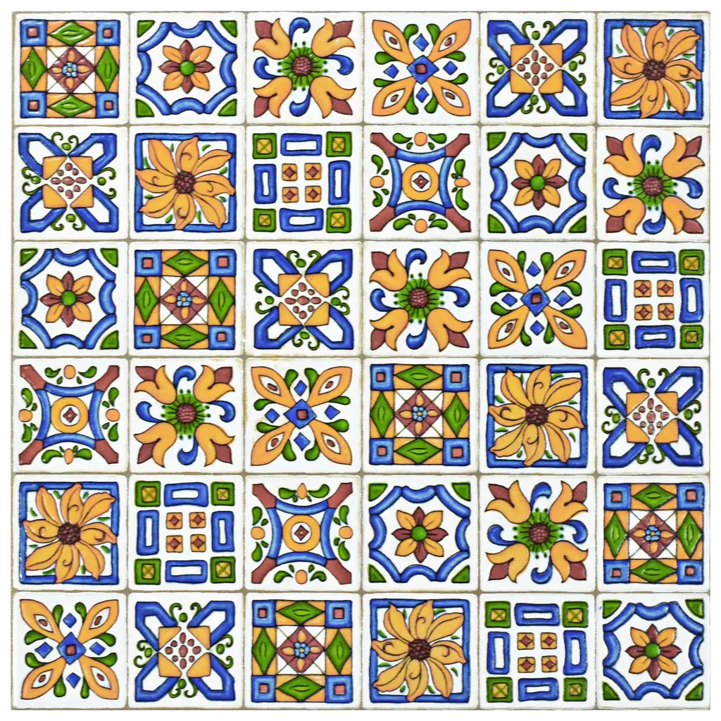 Italian Tile Wallpaper In Yellow, Green, And Red From The Eclectic Collection