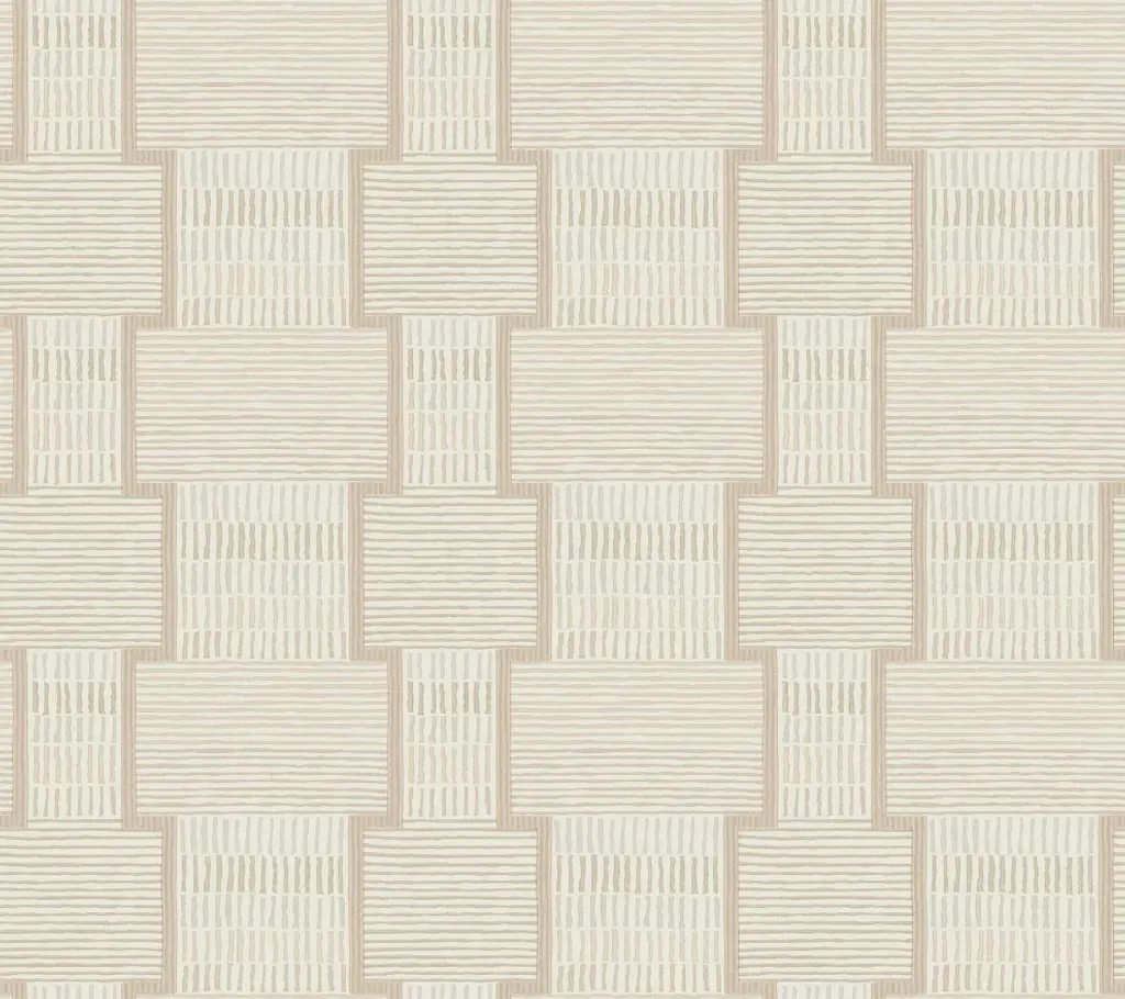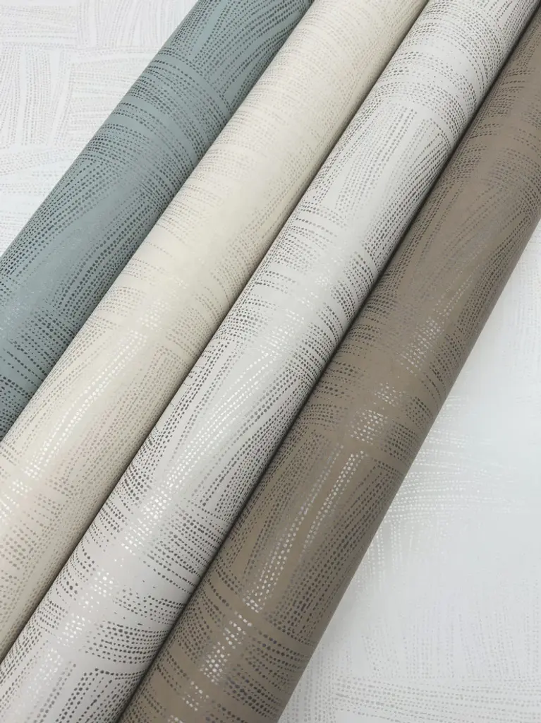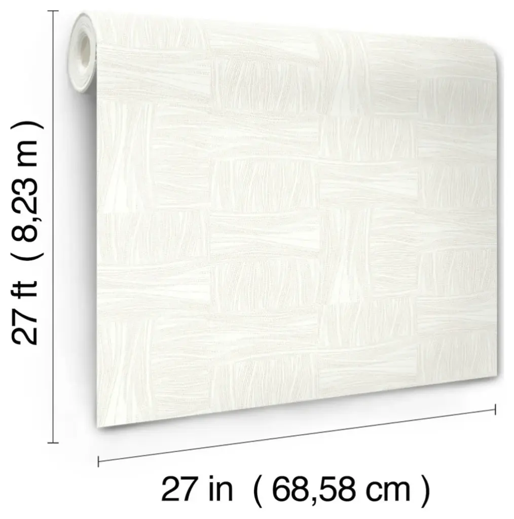 A flowing stream of irregular metallic dots creates an oversized weave in Wicker Dots, shown in pure white with soft gold. This Wicker Dot Wallpaper measures approximately 27 inches wide by 27 feet long, measuring approximately 60.8 square feet per roll. The modern aesthetic of natural form. Unpasted non woven material25.25-in repeat, straight matchWashable and strippable27-in by 27-ft long rollCovers about 60.8 square feet