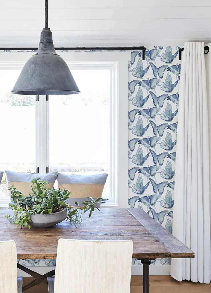 This gorgeous print will add enchantment to your space, connecting you with nature's most beautiful creatures. Swallowtail and monarch butterflies are painted in blue watercolor tones against a crisp white background. Janetta is a prepasted, non woven blend wallpaper.Enjoy the warm and welcoming ambiance of the natural world with the Thoreau Collection. From classic designs with a modern twist to more contemporary comforts, this collection will bridge the gap between the great outdoors and the comforts of home. Material: Non-Woven Blend Features: Prepasted - Washable - Wet Strippable Match Type: Straight Pattern Repeat: 10.25" Roll Dimensions: Sold as in a minimum of 2 single rolls, which are physically packaged as 1 double-roll covering approx. 56 square feet (20.5 in. W x 33 ft L). Brewster Home Fashions is the most fashion forward resource for wall decor, encompassing the ultimate breadth of appealing designs. They travel the globe interpreting design and color trends in order to bring products to the marketplace that are innovative and inspiring, from eco-chic grasscloth, to boutique styled beauties, traditional looks, and modern designs.Please note: Burke Decor does not accept wallpaper returns at this time. Why? Wallpaper is produced in batches (similar to tile) and due to dye-lot variations that occur based on when the rolls are produced, we are unable to accept returns. We accept and offer free shipping on all wallpaper exchanges for all wallpaper that has remained unopened.