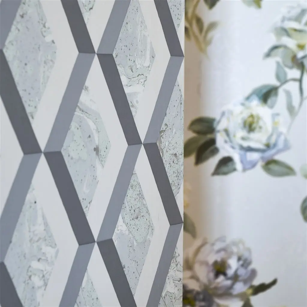 Glamorous geometric trellising embodies this sophisticated and structural wallpaper design. This design combines pattern with texture, via a smooth marbled background and is printed onto a non-woven flexo print ground. From the Mandora Collection: Tailored and chic geometric wallpapers countered by exquisite evocations of secret garden scenes and ombre shaded color. This collection of wallpapers is printed on easy to hang non-woven substrates in a palette of divine colors. Material: Non woven Features: Paste the Wall - Washable - Strippable Match Type: Straight Pattern Repeat: 25.25" Roll Dimensions: 20.5" wide x 33 feet long - approx. 55 square feet. Please note: Burke Decor does not accept wallpaper returns at this time. Why? Wallpaper is produced in batches (similar to tile) and due to dye-lot variations that occur based on when the rolls are produced, we are unable to accept returns. Designers Guild offers a huge array of stylish, modern and utterly versatile wallcoverings. Choose from the myriad of colors - from neutrals and naturals of every hue and tone, to softer shades of washed color and brighter signature accents. Exquisite florals, chic geometrics, textural wallpapers and a range of elegant designs inspired by nature, DG has something for everyone.