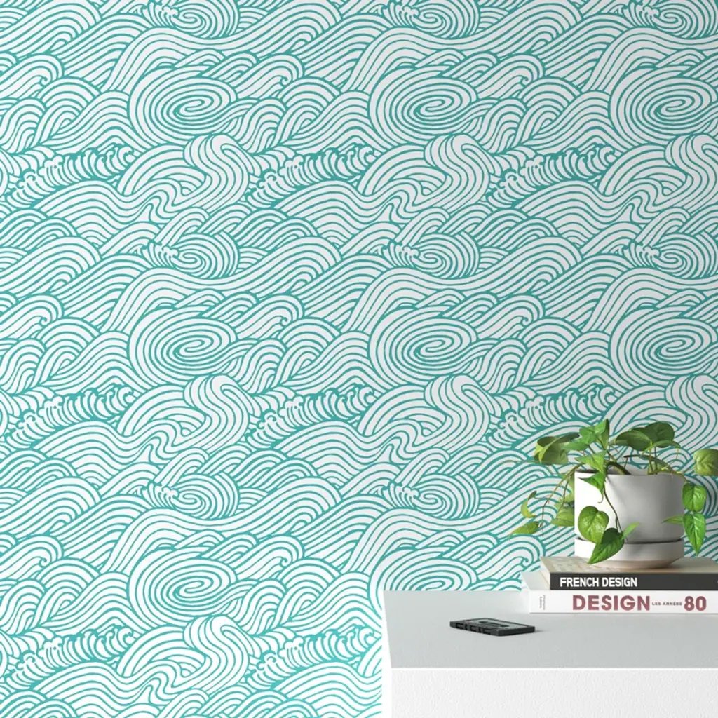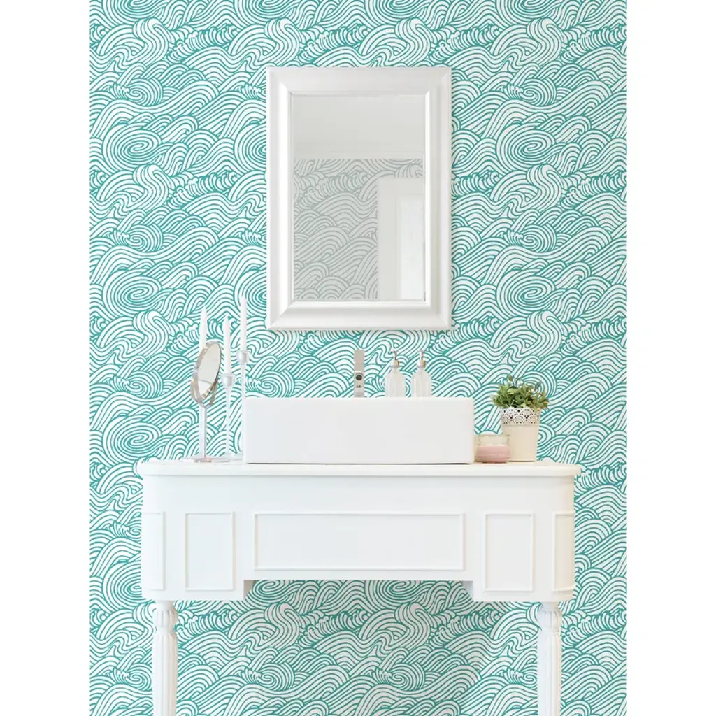 Grey large-scale waves crash against a white backdrop in this cool and contemporary peel and stick wallpaper. The neutral color palette and oceanic pattern is both modern and tropical. Grey Juanita Peel and Stick Wallpaper comes on one roll that measures 20.5 inches wide by 18 feet long.