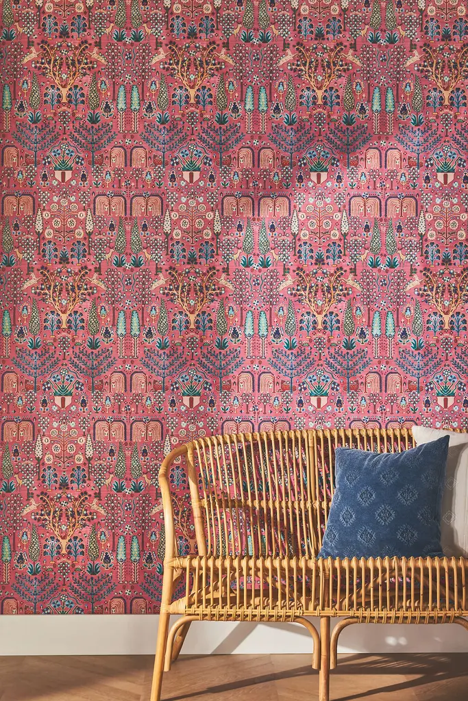 Whether used in an entire room or on an accent wall, this design is sure to add a charming, decorative touch to any space.To calculate the square footage of your space, we recommend combining the width of each wall, then multiplying this number by your ceiling height. Next, divide this number by the square footage of a single roll of wallpaper to determine the number of rolls required. Always round up to account for pattern repeat and variation.Need help choosing the right wallpaper for your home? Read our guide to transforming your walls - and your space.