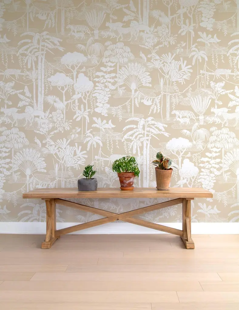 Get lost in this nocturnal fantasy jungle-scape! Flora and fauna combine to create the ultimate dreamy pattern.Samples are available for $18 including US shipping, please message us to purchase. Printing: Screen-printed by hand (minimum order and setup fees apply).Material: FSC-certified paper. Trimming: This product may come pre-trimmed or untrimmed. Packaging: May be shipped as double rolls, or as a combination of double and single rolls. Single roll: 27 inches × 5 yards (68.8 cm × 4.5 meters) Sheet: 27 × 36 inches (68.8 × 91.4 cm)Sample:~ 8 × 10 inches (20.3 × 25.4 cm)Design Repeat: 44 inches (111.8 cm) Design Match: Half-DropSize note: Since this pattern is a half-drop, the pattern repeats on the wall every 54 inches (137.2 cm) in width, by 36 inches (91.4 cm) in height.Made in the USA. Ships worldwide.