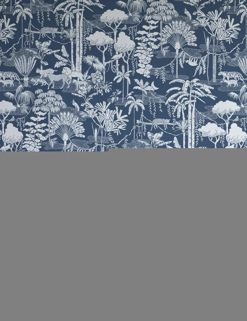 Jungle Dream Designer Wallpaper In Lune 'Pale Grey And Navy'