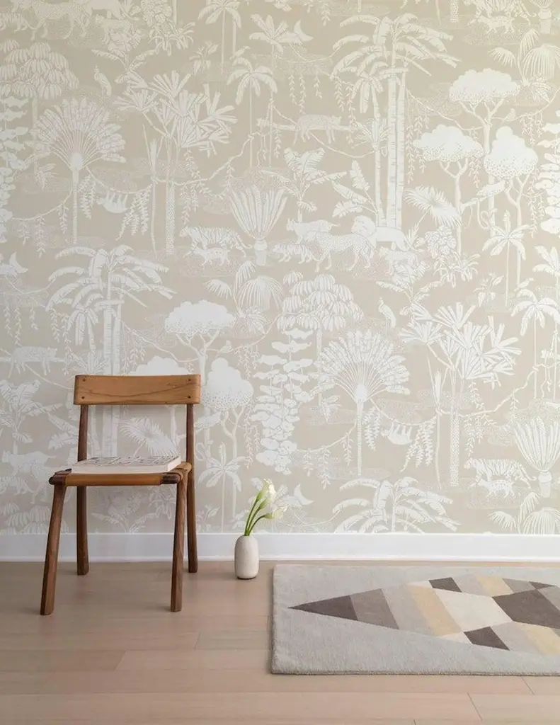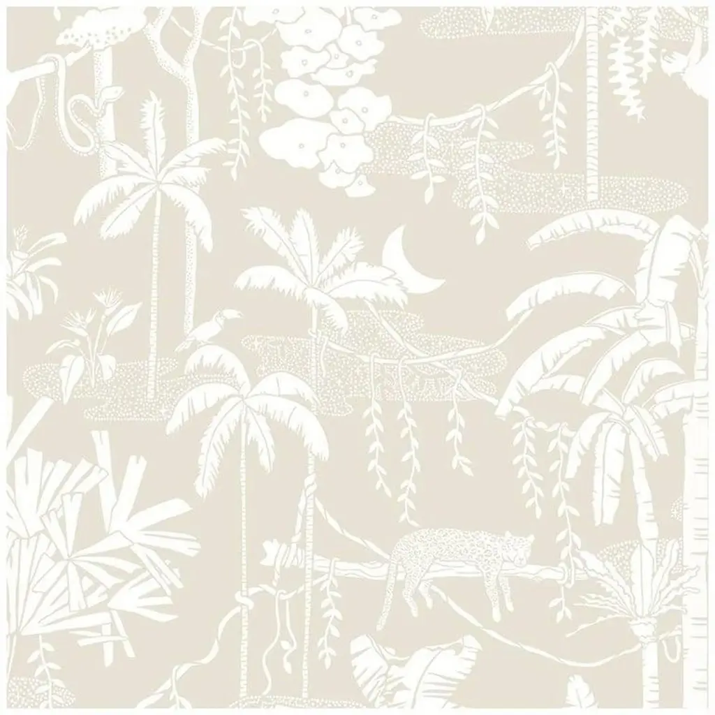 Jungle Dream Designer Wallpaper In Parchment 'White On Warm Neutral'