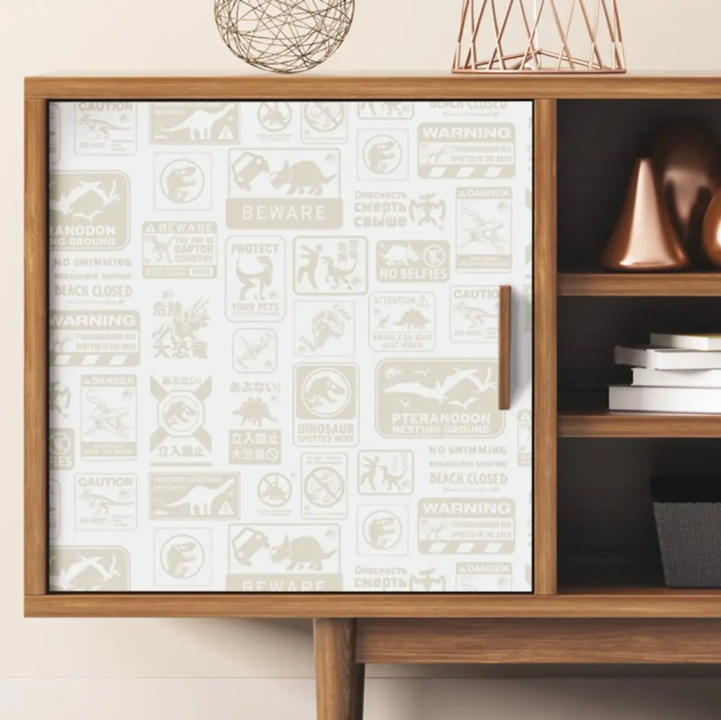 Enter this room at your own risk! The warning signs featured in this wallpaper (alongwith renditions of all of your favorite dinosaurs from the Jurassic World blockbuster moviefranchise) make for a totally immersive experience. The themed Jurassic World decor gives anew twist on fun accents like peel and stick wallpaper for dino fans of all ages! The JurassicWorld Dominion Signs peel and stick wallpaper combines a sophisticated look while remainingsuper fun! Available in two colorways.