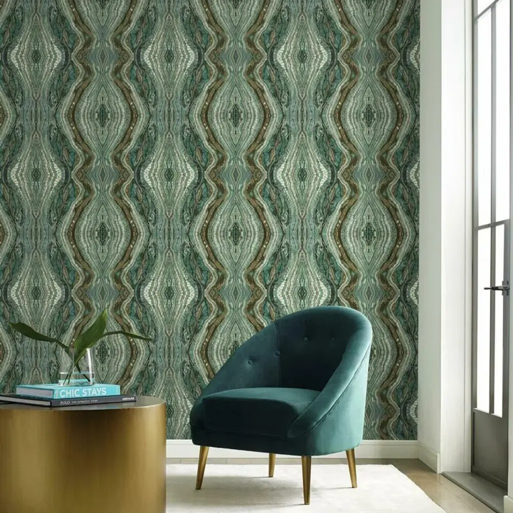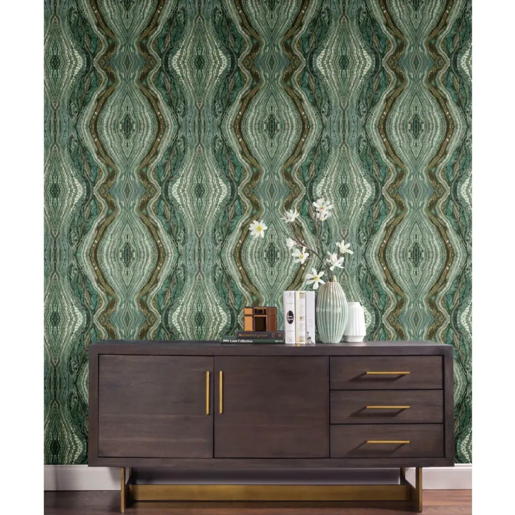 This product is a superior luxury non-woven peel and stick wallpaper, which removes easily in full strips without damage to surfaces. Pattern Kaleidoscope suggests layers of colorful gemstones in a mesmerizing array of mirrored images. Includes 1 roll - 27 in x 20 ft = 45 sq ft with a straight match and 24 in repeat.