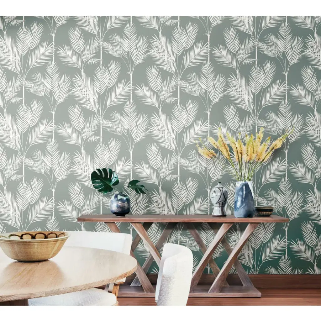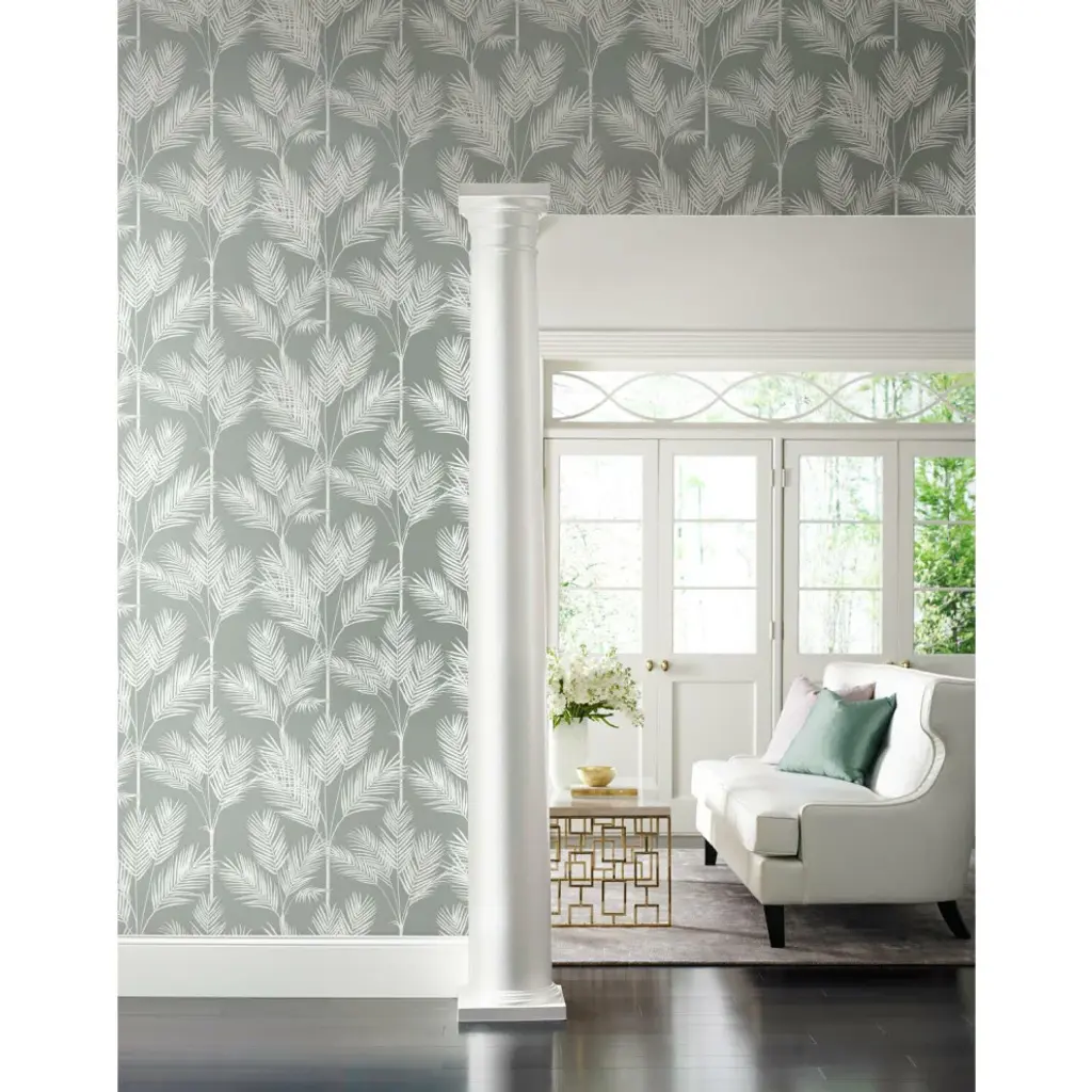 The allure of coastal-chic interiors beckons, with an easy elegance that speaks to the playful pace and casual luxury of living by the water�s edge. Manufactured on Sure Strip�, a unique high performance substrate, this ultra-easy removable wallpaper is guaranteed easy to install and easy to remove; simply use water to activate. The oversized fronds of the Australian palm tree inspire the textural ink silhouette of pattern King Palm. Includes 1 roll - 20.5 in x 33 ft = 56 sq ft with a drop match and 52.07 cm repeat.