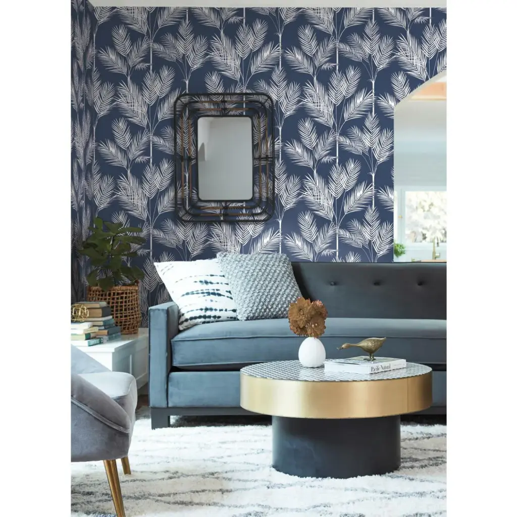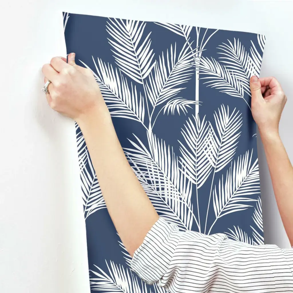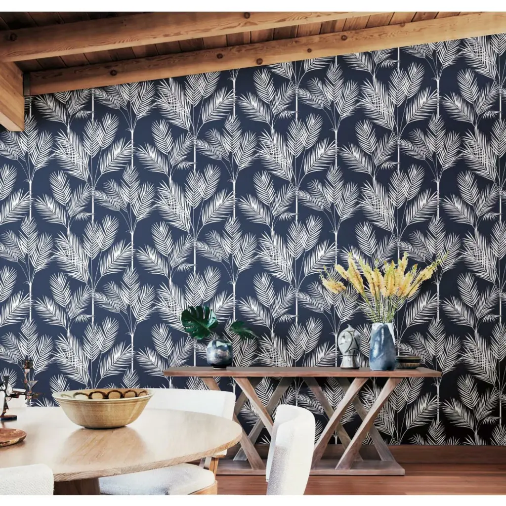The allure of coastal-chic interiors beckons, with an easy elegance that speaks to the playful pace and casual luxury of living by the water�s edge. Manufactured on Sure Strip�, a unique high performance substrate, this ultra-easy removable wallpaper is guaranteed easy to install and easy to remove; simply use water to activate. The oversized fronds of the Australian palm tree inspire the textural ink silhouette of pattern King Palm. Includes 1 roll - 20.5 in x 33 ft = 56 sq ft with a drop match and 52.07 cm repeat.