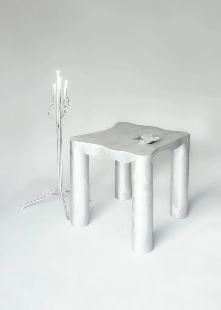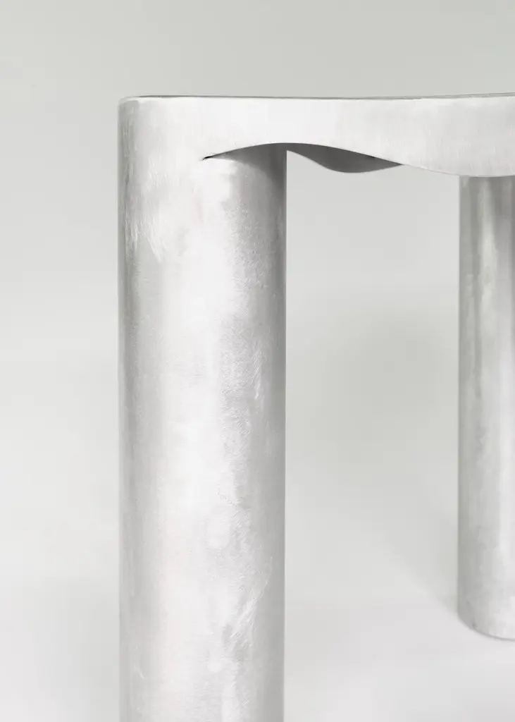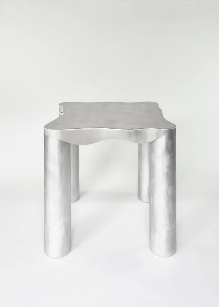 Joseph Ellwood is a British designer and maker, he has been named one of 10 'Future Icons' in design by Wallpaper magazine, collaborated with the luxury brand Rimowa and embarked on numerous exciting projects for 2023. He set up his design and manufacture studio: Six Dots Design in 2020Our aluminium Kitchen table can be made to your specification, it’s perfect for both indoor and outdoor use and can elevate any space. We love the way the legs blend into the top of the table, creating a seamless and elegant surface. Each of our pieces are made from raw finished aluminium, a material that can be readily reused and recycled. This recyclability, coupled with new low carbon cathode technologies, make aluminium a sustainably plausible material for the future.The aesthetic of our work aims to challenge and disrupt the mid-century norms of furniture today. I have taken inspiration from the likes of Perriand and Prouvé and distorted their pieces to create a body of work that relates to our current generation. The lives we live today are fluid in gender, identity, expression and thought. Our work represents this confusion, indecision and anxiety in a whimsical and endearing way.Each of our pieces is hand made to order, therefore slight variation from object to object can be expected.