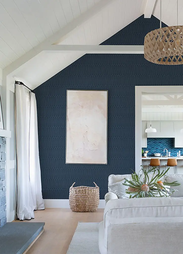 This chic striped wallpaper offers a new take on retro flair. Each stripe is formed by a tightly waving line painted in deep navy along an indigo background. Lars is an unpasted, non woven wallpaper.Create a joyful home filled to the brim with cozy contentment thanks to the Hannah Collection. This warm and welcoming Scandinavian-inspired collection features an array of block printed botanicals, timeless geometrics with retro flair, and folk art-inspired designs. Material: Non-Woven Features: Unpasted - Washable - Strippable Match Type: Straight Pattern Repeat: 20.9" Roll Dimensions: Sold as in a minimum of 2 single rolls, which are physically packaged as 1 double-roll covering approx. 56 square feet (20.5 in. W x 33 ft L). Brewster Home Fashions is the most fashion forward resource for wall decor, encompassing the ultimate breadth of appealing designs. They travel the globe interpreting design and color trends in order to bring products to the marketplace that are innovative and inspiring, from eco-chic grasscloth, to boutique styled beauties, traditional looks, and modern designs.Please note: Burke Decor does not accept wallpaper returns at this time. Why? Wallpaper is produced in batches (similar to tile) and due to dye-lot variations that occur based on when the rolls are produced, we are unable to accept returns. We accept and offer free shipping on all wallpaper exchanges for all wallpaper that has remained unopened.