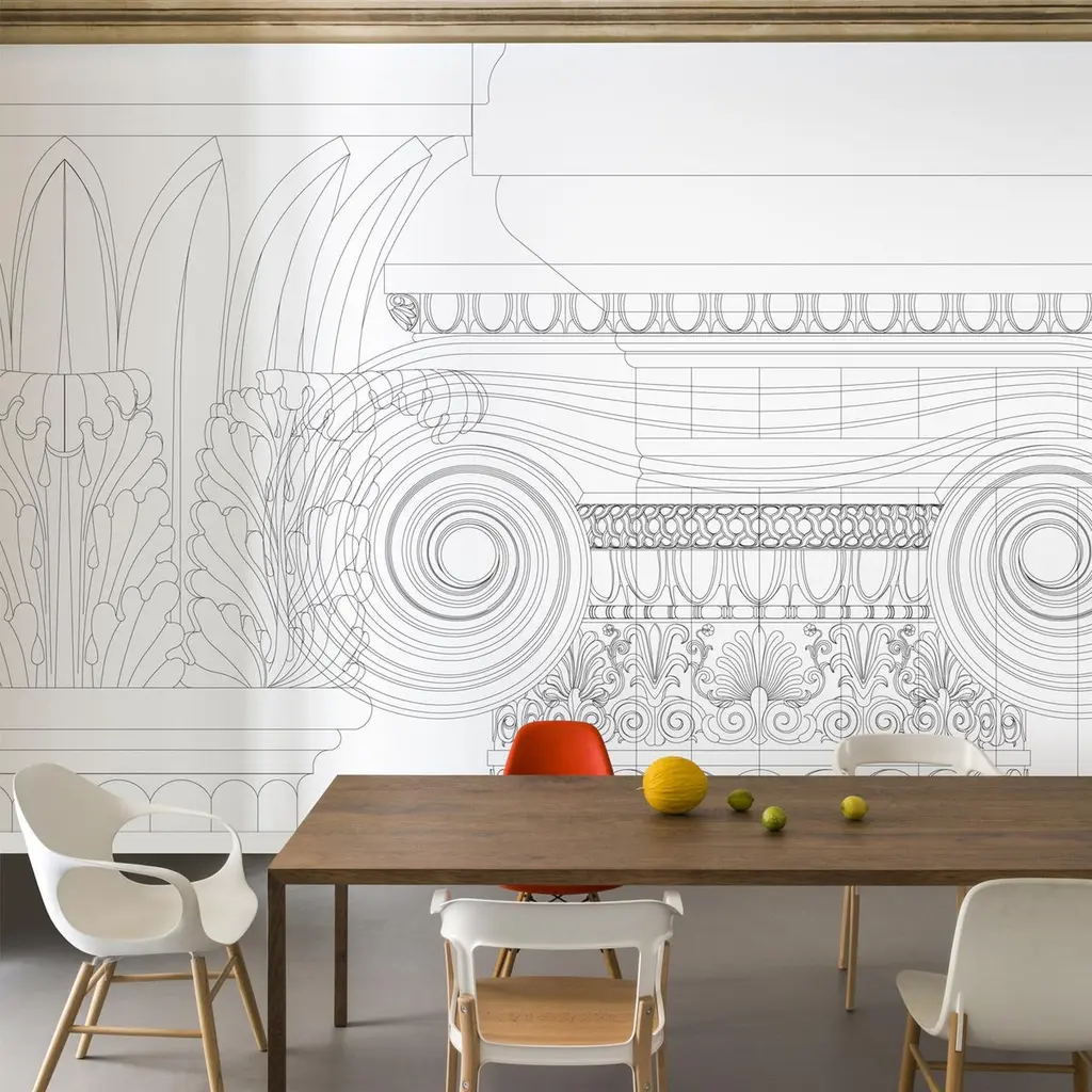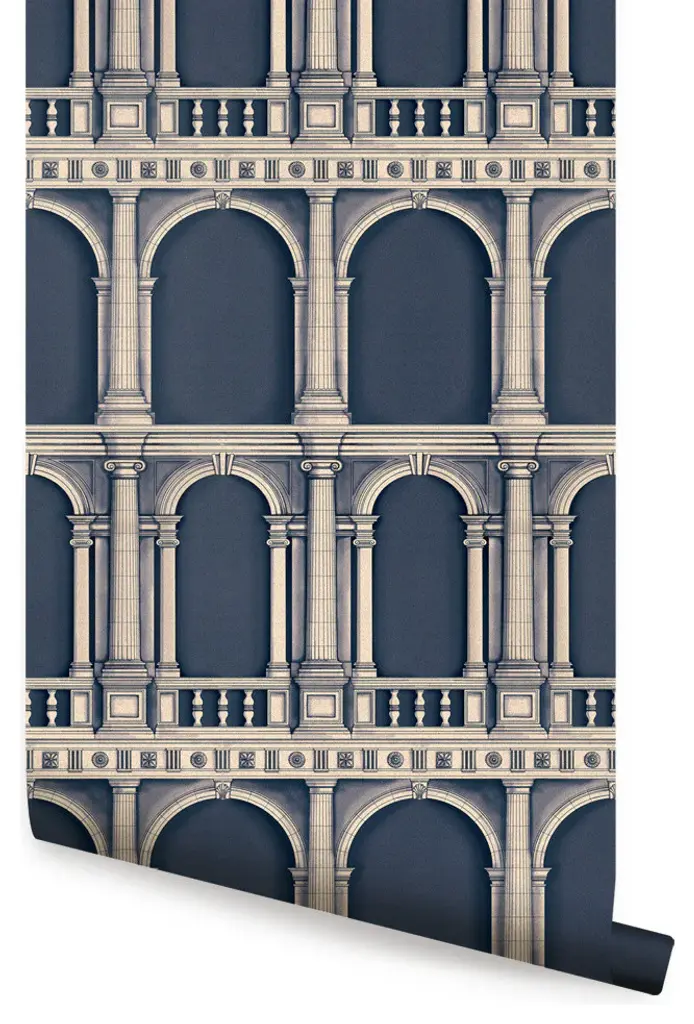 Were I, all of a sudden, to find myself lost in a dream, I would search in the horizon for the right moment to make it come true.Even if everything seems frozen in time, it’s actually moving and evolving.In this seemingly never ending time, ideas have started to grow and shape themselves: in a moment where we feel like we cannot make visions and projects come true as we are suspended in a dreamlike world, we looked for a way to make the intangible, tangible: dreams, memories, thoughts, moments and digital visions.The eclectic approach of Chiara Pellicano and Edoardo Giammarioli made this challenge possible.The results are three collections of wallpaper playing around this concept: Nebula, Windows and Layers.Imagining a digital past, the collection Layers elaborates several temporal and geometric juxtapositions. Classical elements like columns and capitals, in a triumph of wireframe shapes.There isn't a defined pattern for the wallpaper positioning, the project is customized on the wall. The stripes can be swapped to fit the needs of the room, choosing to have more or less glitch and where to place it.Heavy-duty wallpaper with top layer in paper, colorfast and washable with a slightly wet soft cloth.Glue must be applied to the wall and not the wallpaper.Stripes are 47cm wide.€ 294 per square meter.