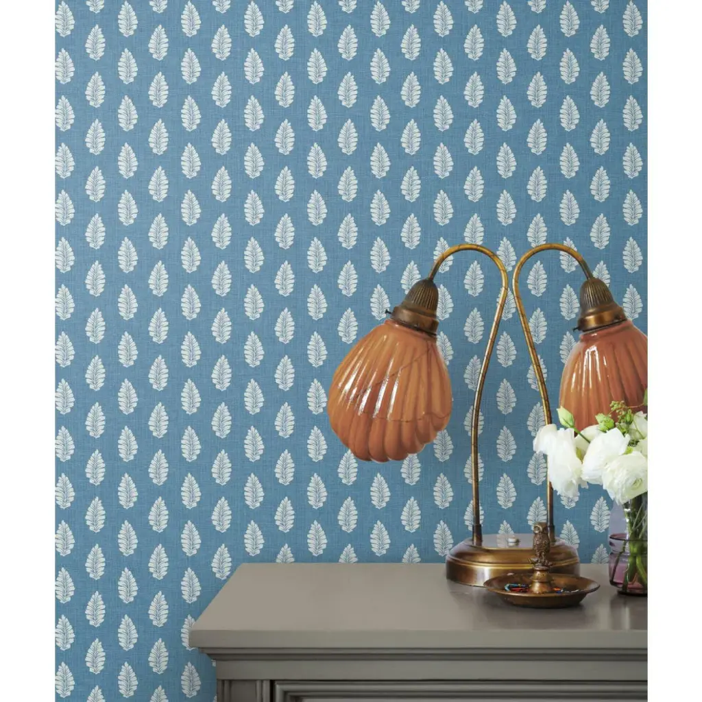 Timeless motifs combine with sophisticated color to create the playful, casual pattern mix of heritage and modern found in Grandmillennial. Manufactured on Sure Strip�, a unique high performance substrate, this ultra-easy removable wallpaper is guaranteed easy to install and easy to remove; simply use water to activate. The gentle leaves of pattern Leaf Pendant arch in stripe formation on a ground of linen woven texture. Includes 1 roll - 27 in x 27 ft = 60.75 sq ft with a straight match and 25.25 in repeat.
