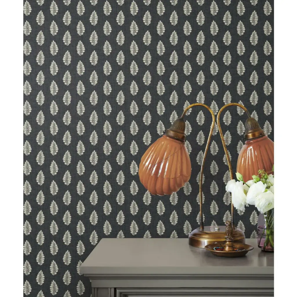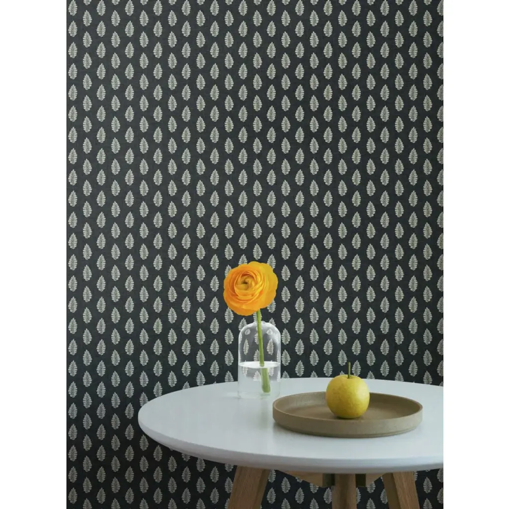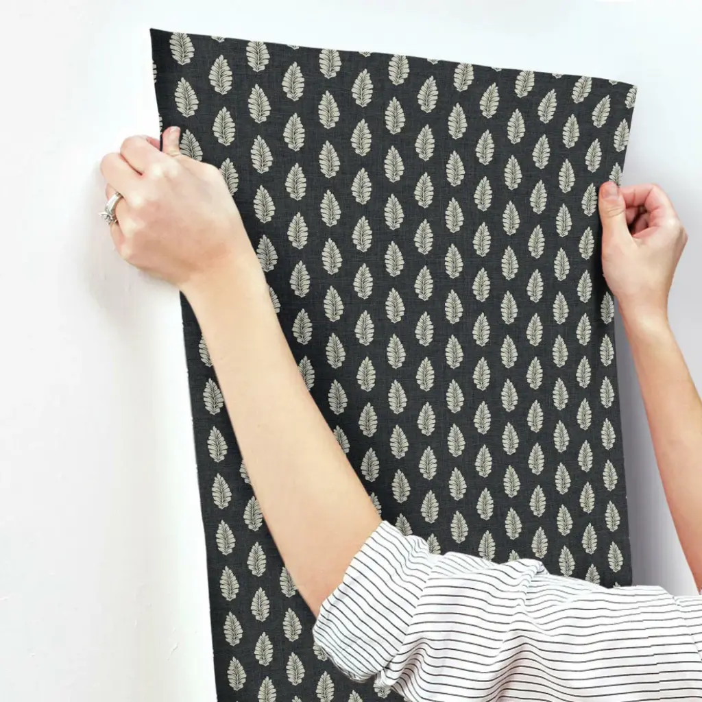 Timeless motifs combine with sophisticated color to create the playful, casual pattern mix of heritage and modern found in Grandmillennial. Manufactured on Sure Strip�, a unique high performance substrate, this ultra-easy removable wallpaper is guaranteed easy to install and easy to remove; simply use water to activate. The gentle leaves of pattern Leaf Pendant arch in stripe formation on a ground of linen woven texture. Includes 1 roll - 27 in x 27 ft = 60.75 sq ft with a straight match and 25.25 in repeat.