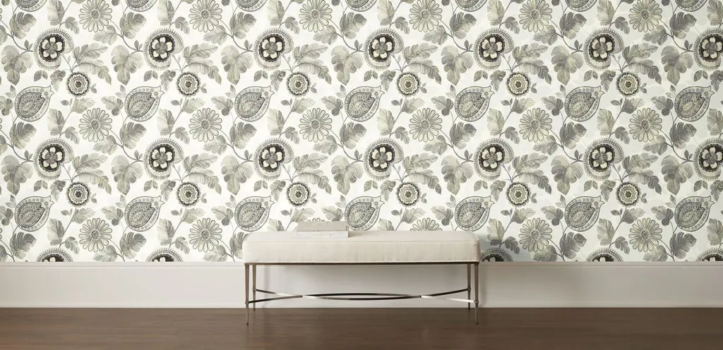 Detailed paisley floral patterns add whimsy to your walls! This wallpaper, in your choice of color, makes a delightful accent wall or bathroom wallpaper.