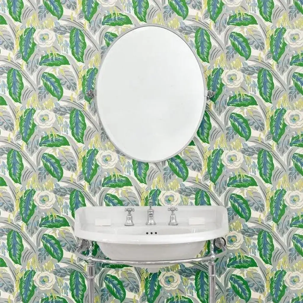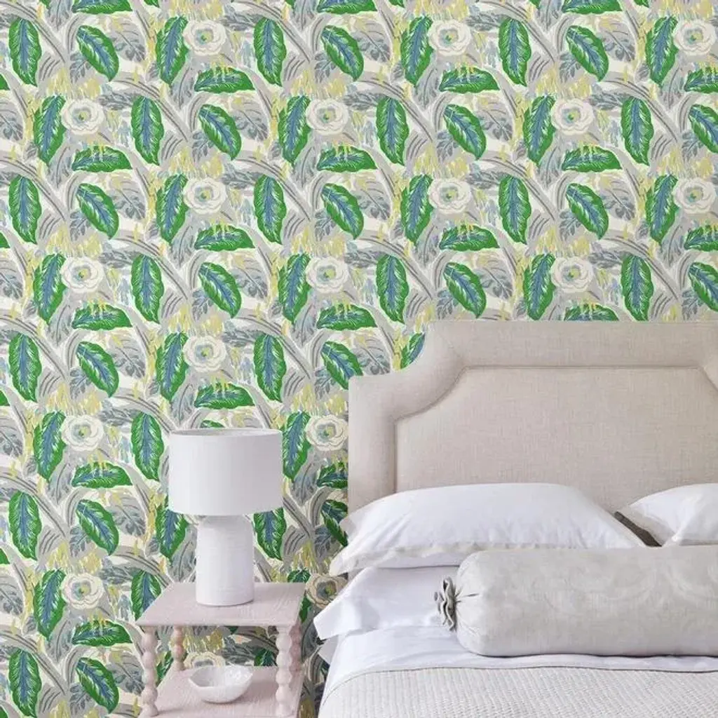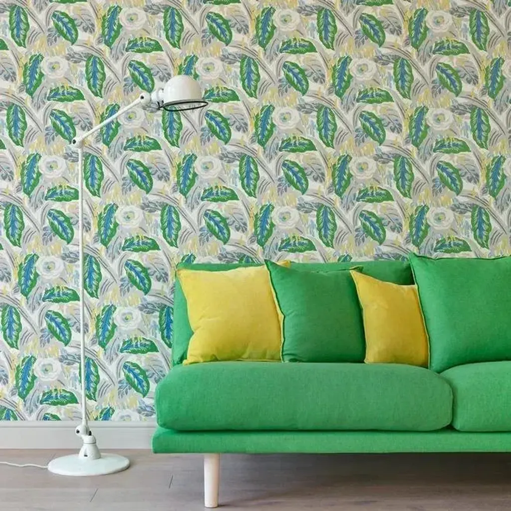 Taking inspiration from the wild brush strokes of a Fauvist painting, this floral wallpaper - hand painted by Linwood's creative team - depicts lush, interlocking leaves and flowers in a fresh, Scandi-inspired colour palette. Pattern Repeat (inches): 17.76