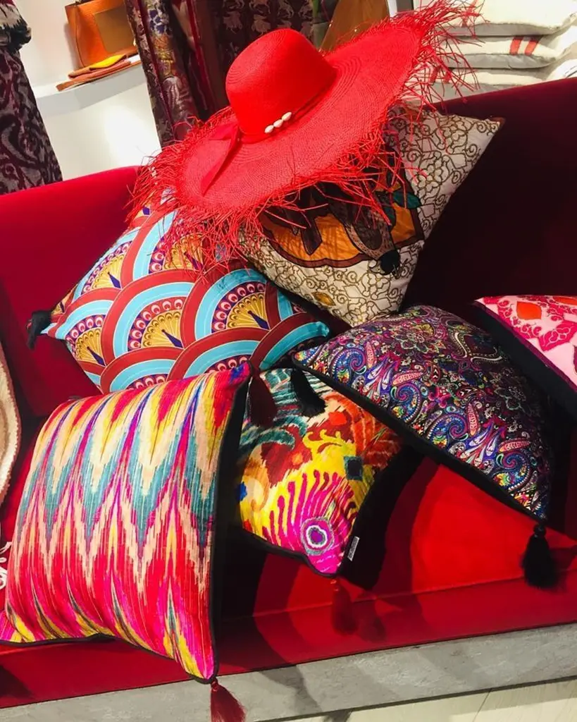 Matthew’s design DNA has translated seamlessly into interiors. Interior design commissions include the courtyard garden at Blakes Hotel in London, the bridal suite at Aynhoe Park, Oxfordshire and Suite 67 at Belmond La Residencia. His range of branded products in the luxury lifestyle and interiors arena includes wallpapers and fabrics with Osborne & Little, rugs with The Rug Company, stationery with Museums & Galleries, lighting with one. World and luxury home fragrance with Fragrance Group London.Additional information- Color options: Purple paisleys, blue and red peacocks, pink, blue, red, purple and yellow, multi-color peacock feather, material: Silk cushion, dimensions: 50 x 50 cm.