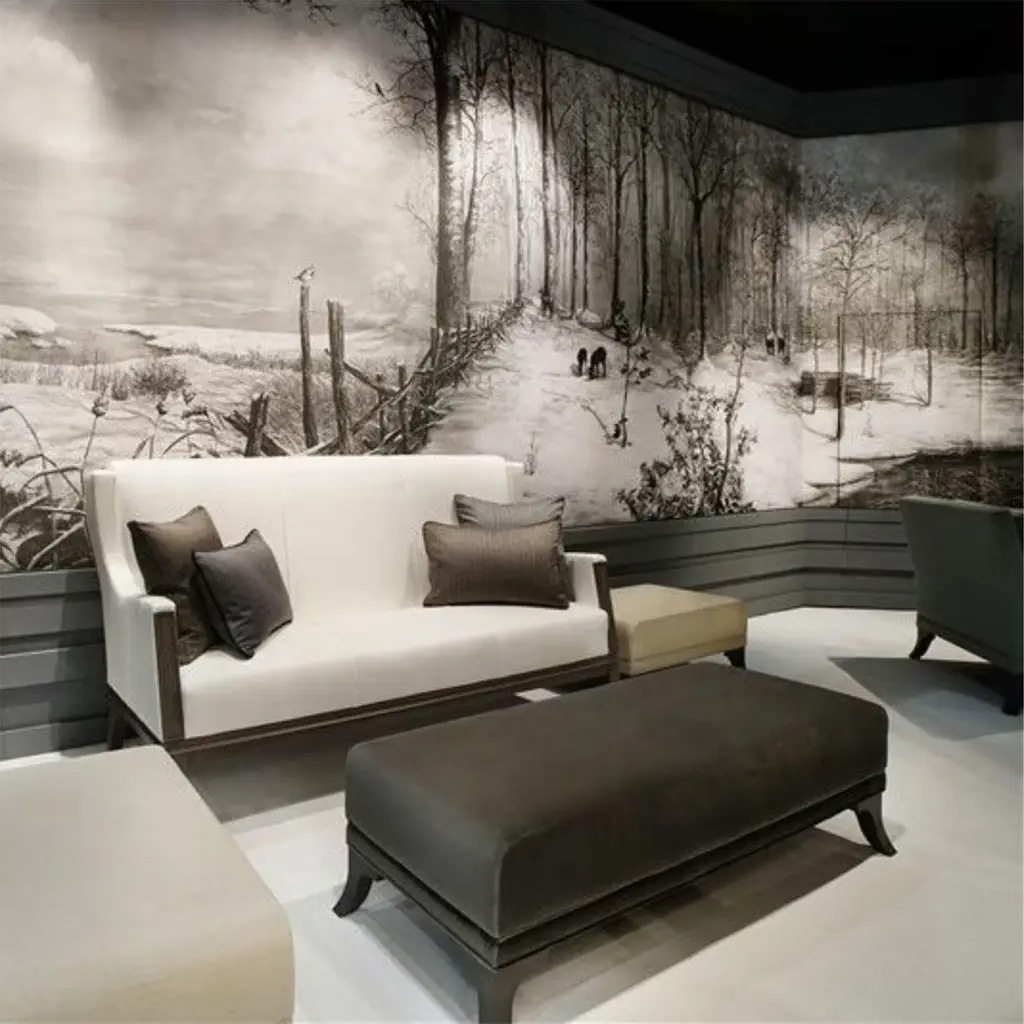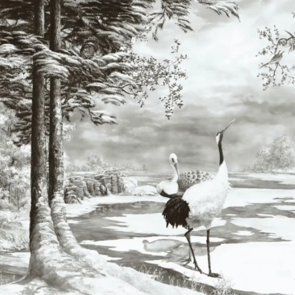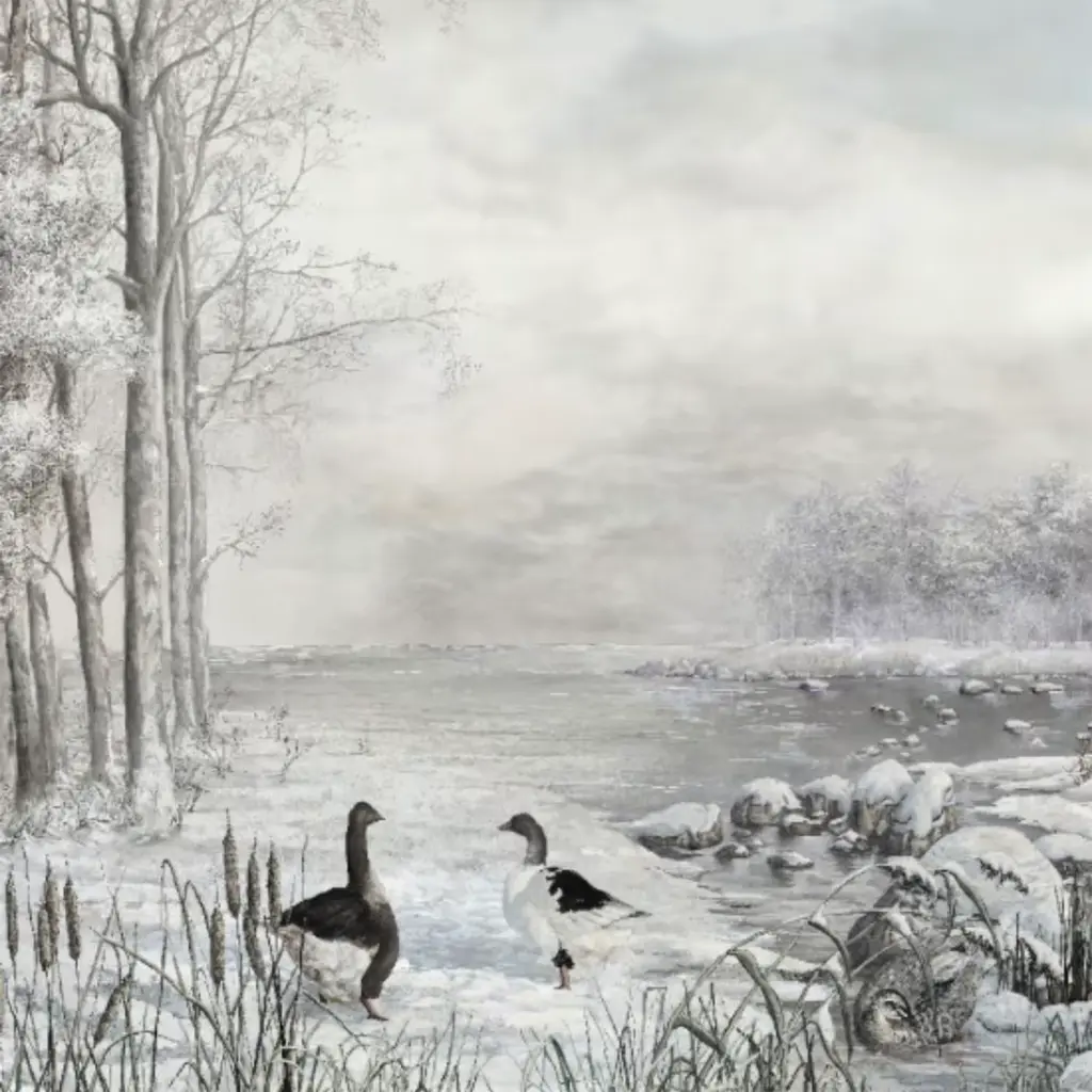The Light Blue & Gray Irish Ponds Cotton Wallcovering Fabric was inspired by the serene beauty of nature, capturing the essence of early spring in a tranquil Nordic landscape. Featuring a unique pictorial technique, it offers a soft glare that enhances the visual depth of the immage, bringing the outdoors inside. Crafted for both aesthetic appeal and functional benefits, the piece is ideal for creating inviting interiors. The price is per square meter and the design can be selected according to desired lengths and scenes, providing the freedom to create a personalized setting. The fabric is also available in an alternative height of 270 cm. Please contact the Concierge for additional information.