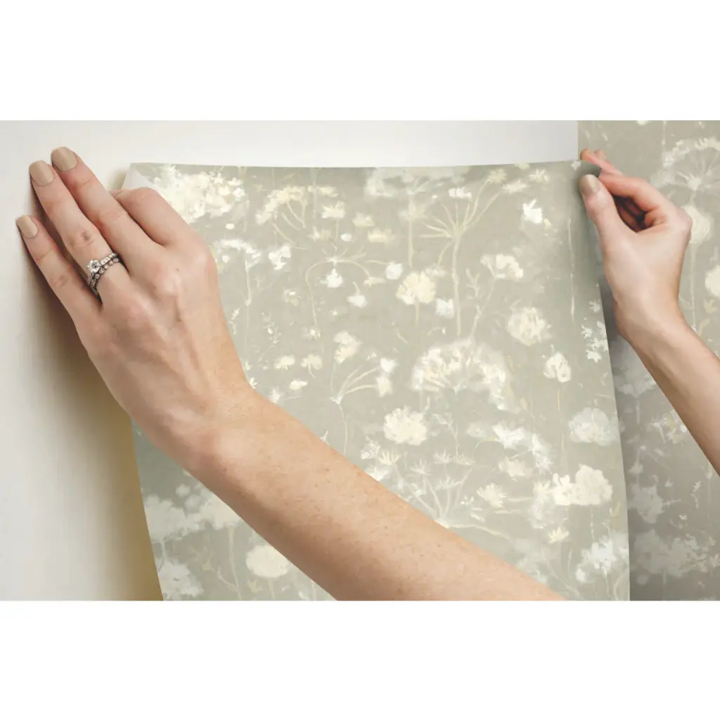 Pleasingly vague artistry in captivating misty colors, Botanical Fantasy Wallpaper is a luscious floral with a soothing romantic aura. This Botanical Fantasy Wallpaper measures approximately 27 inches wide by 27 feet long, covering About 60.8 square feet per roll. Durable and easy to remove from primed walls, this friendly to hang unpasted nonwoven wallpaper is created with a special blend of synthetic fibers, making it both easy to hang and tear resistant. Unpasted non woven material; 24-in repeat, straight match; Washable and strippable; 27-in by 27-ft long roll; Covers about 60.8 square feet