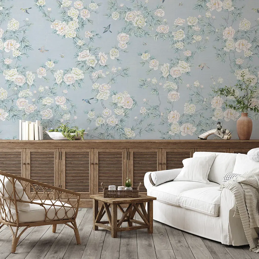Soothing tones, flourishing peonies, and soaring birds come together to create a serene chinoiserie mural wallpaper in Lillian's classic blue. This wall mural is available in 3 unique panels, each sold separately. To purchase a sample of this mural, please visit our Wall Mural Sample listing. Ships In 5-6 Weeks Ships In 5-6 Weeks Ships In 5-6 Weeks Ships In 5-6 Weeks Ships In 5-6 Weeks Ships In 5-6 Weeks Ships In 5-6 Weeks Ships In 5-6 Weeks Ships In 5-6 Weeks Ships In 5-6 Weeks Ships In 5-6 Weeks Ships In 5-6 Weeks Design height is 120" Covers 30 sq. ft. per panel Made to order This image is for illustrative purposes only. The colors shown are accurate within the constraints of lighting, photography, and the color accuracy of your screen.