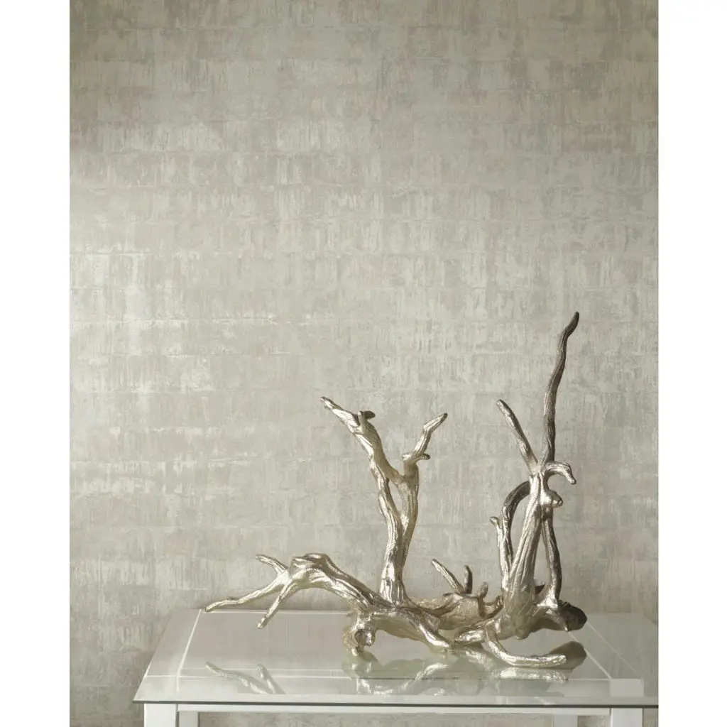 Pattern Liquid Metal is a shimmering cascade inspired by the look of pure gold when melting and casting decorative art and jewelry. This Liquid Metal Wallpaper measures approximately 27 inches wide by 27 feet long, covering About 60.8 square feet per roll. The look of hammered metallic and pearl provides a glimmering cascade of sophisticated urban glamour for well-appointed walls in pattern Liquid Metal. Unpasted non woven material; 25.25-in repeat, straight match; Washable and strippable; 27-in by 27-ft long roll; Covers about 60.8 square feet