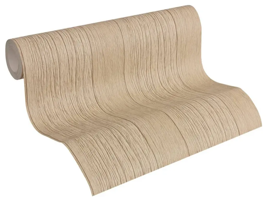 Loft Modern Nature Textured Wallpaper, Wood Planks, Beige Brown, One Roll