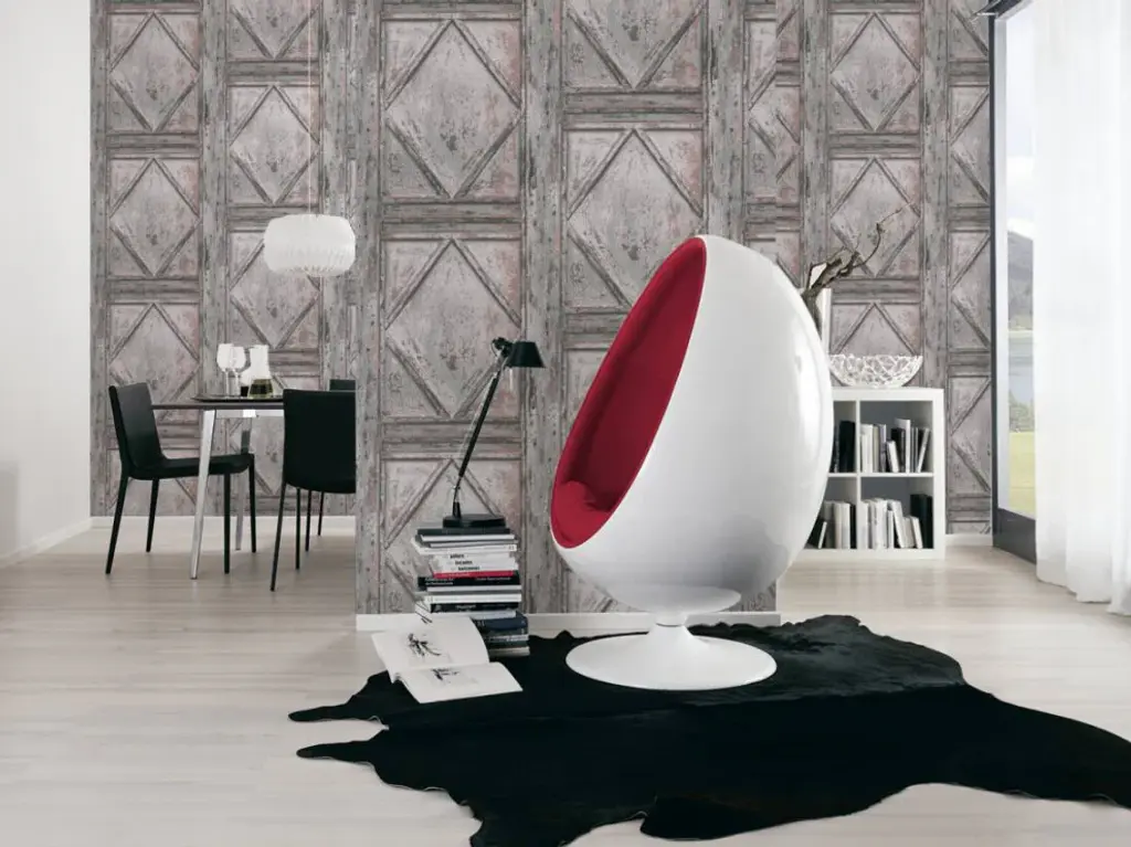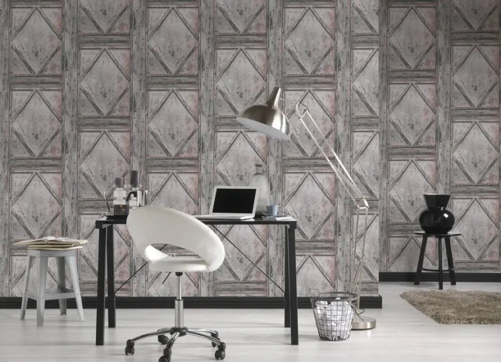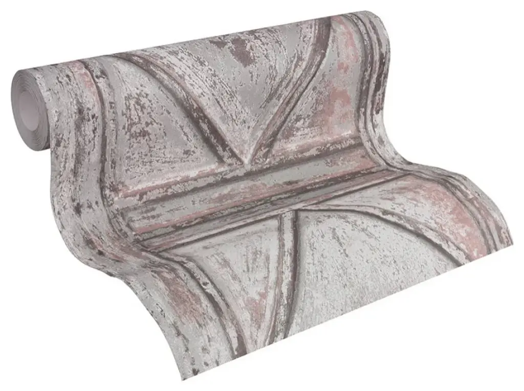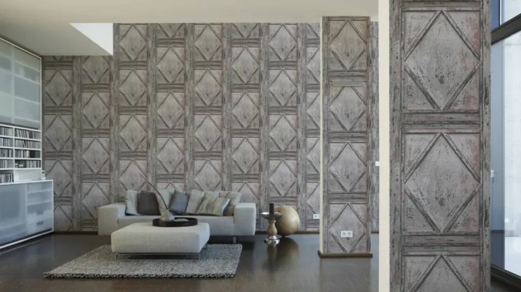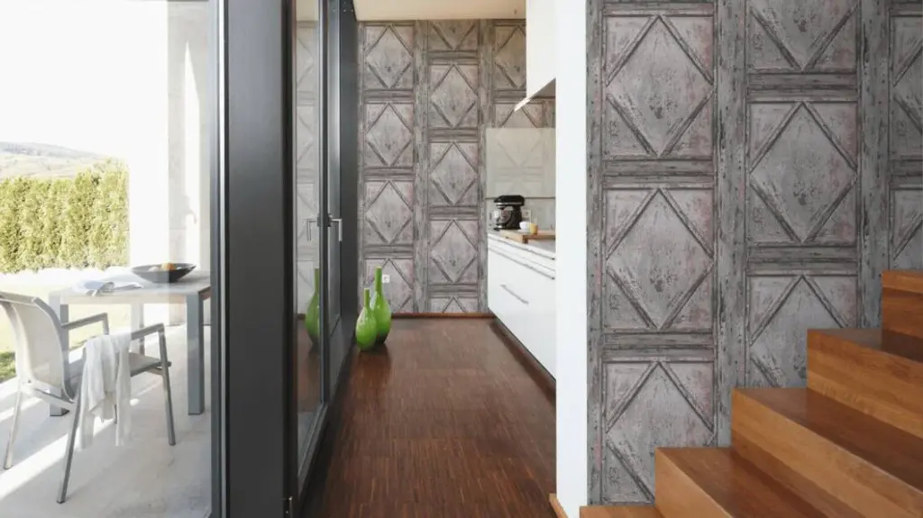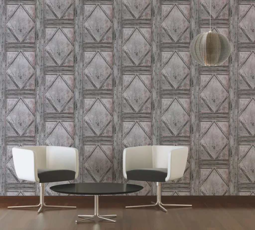 Loft Vintage Textured Wallpaper Featuring Boxes Wood, Gray Brown, One Roll