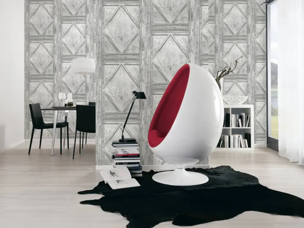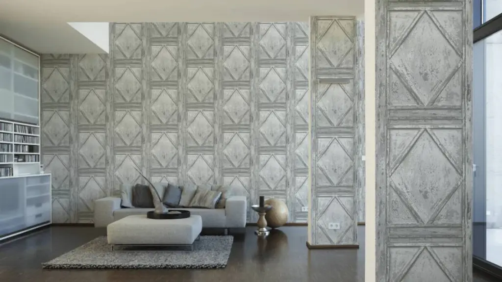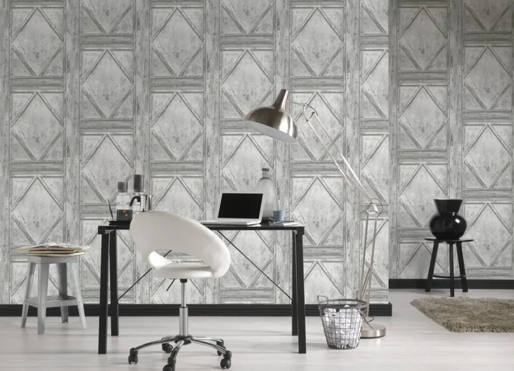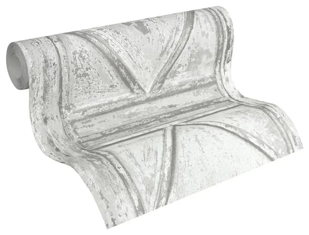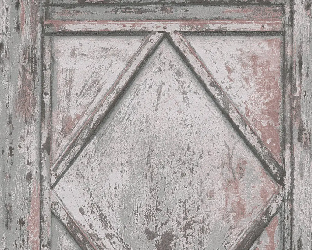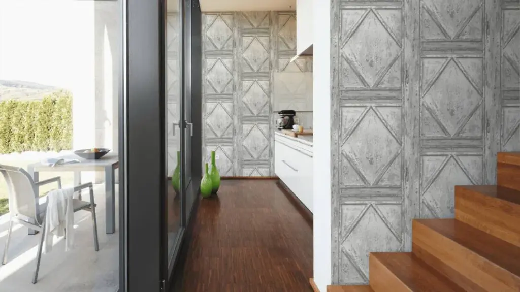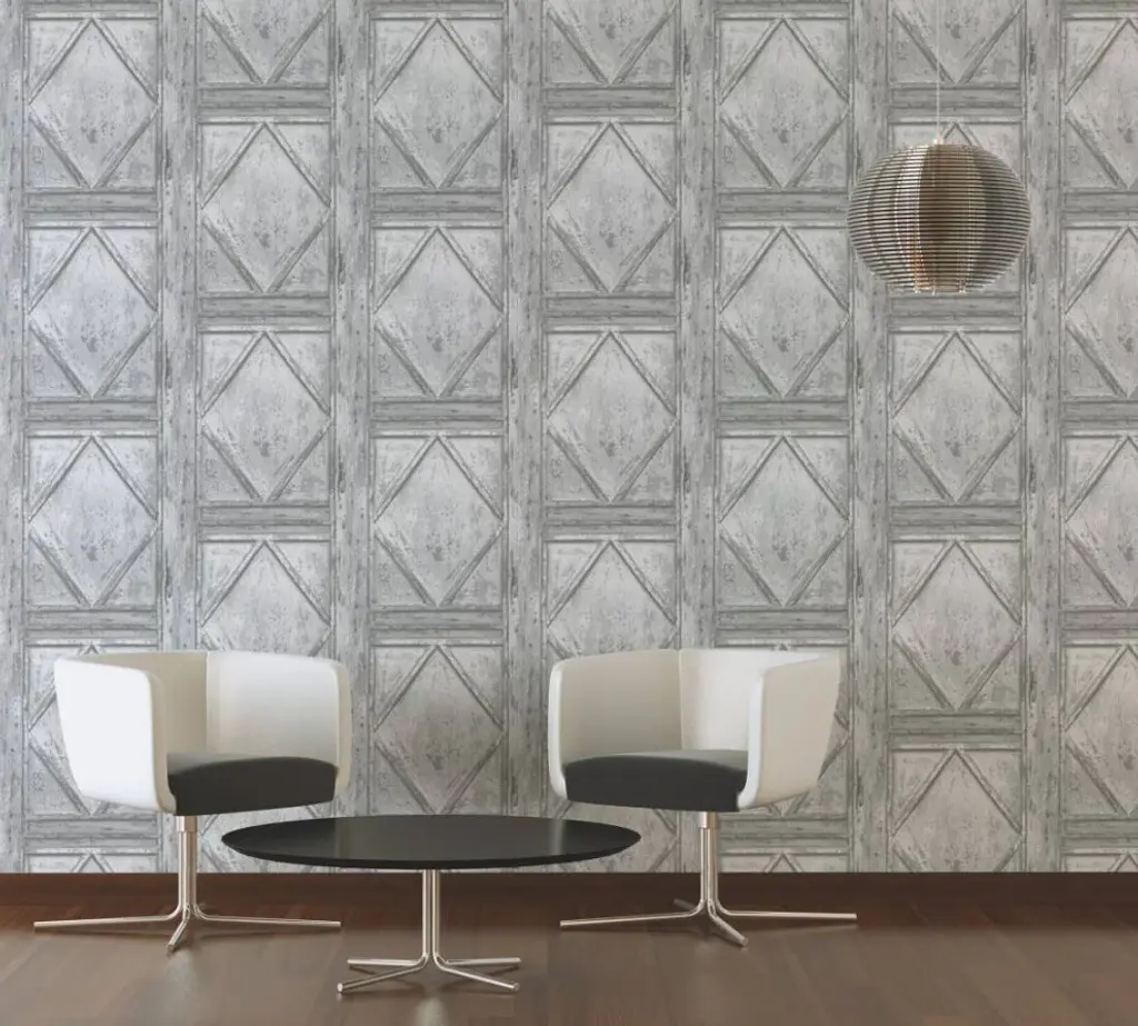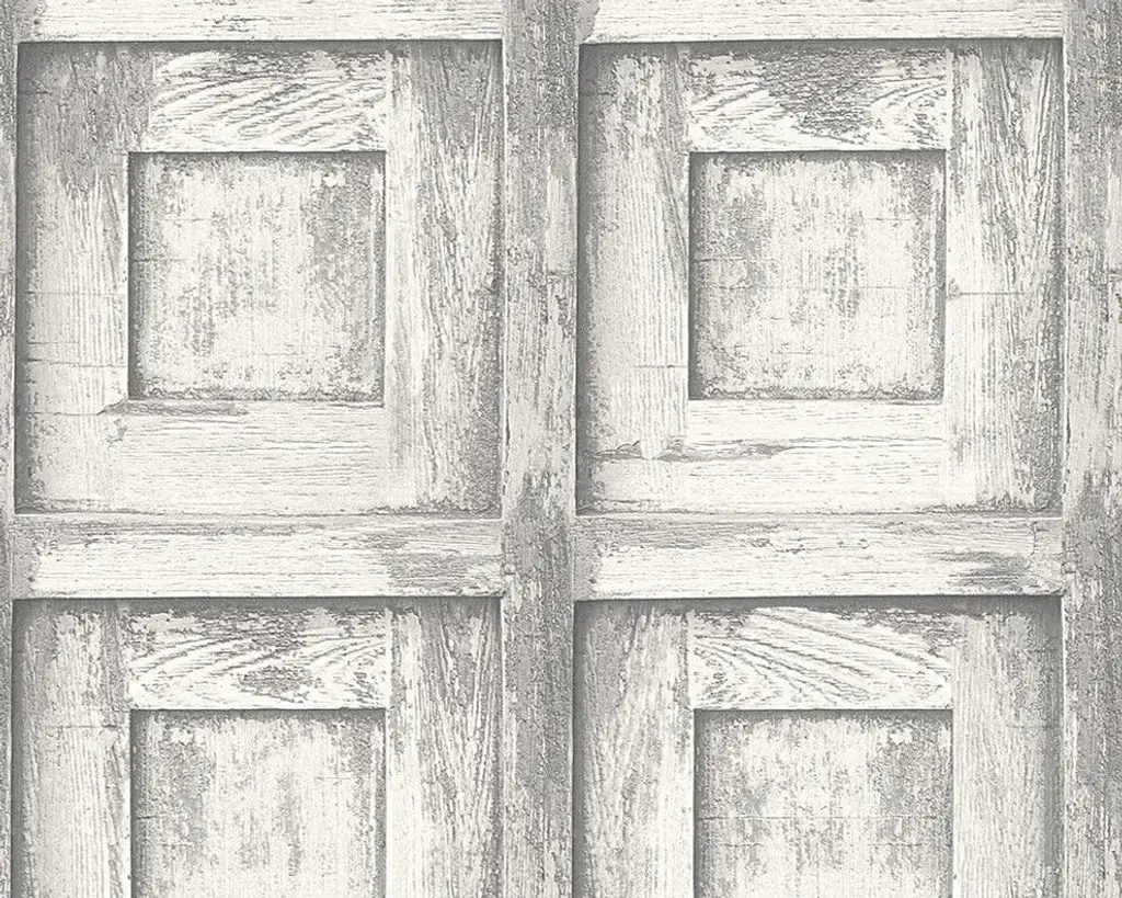 Loft Vintage Textured Wallpaper Featuring Boxes Wood, Gray White, One Roll