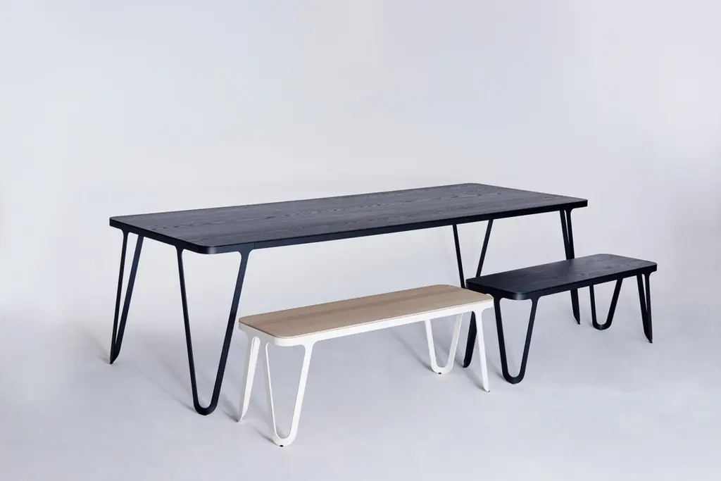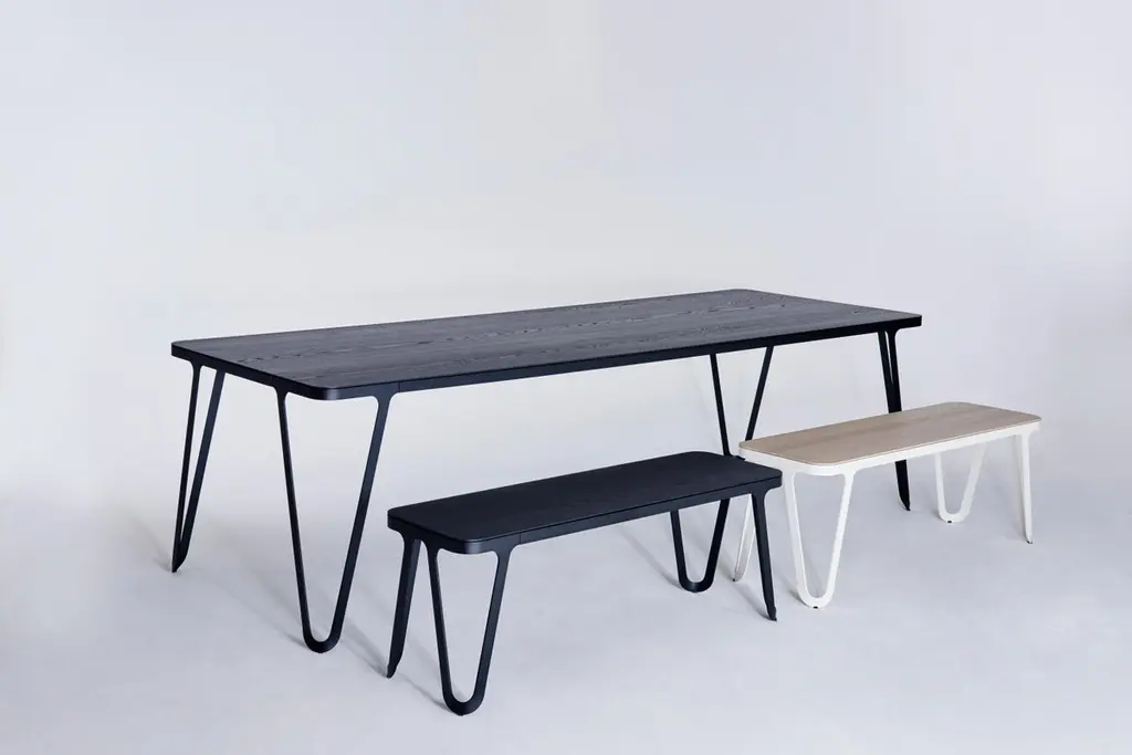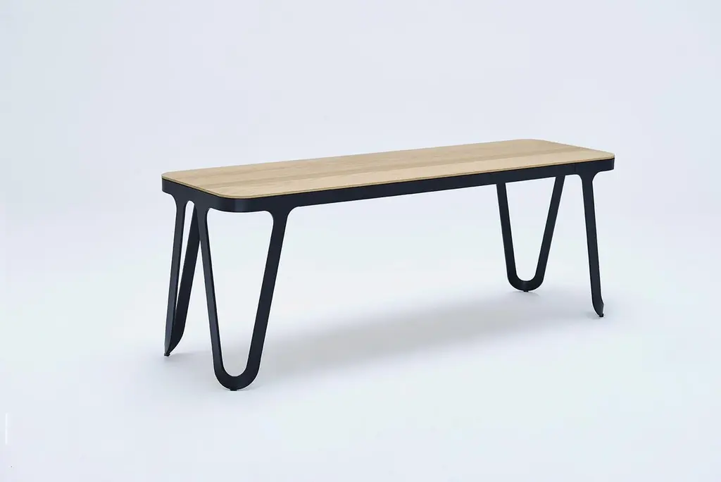 Loop bench 160 Ash by Sebastian SchererMaterial: Aluminium, AshDimensions: D200x W38 x H45 cm.Weight: 25.8 kgAlso Available: Colours: solid wood (matt lacquered): black and white stained ash / natural oak / american walnutframe (matt): snow white / light sand / space blue / graphite grey /dark bronze / ink blackraw aluminium (not powder coated)The Loop series is characterized by its elegant and futuristic design language. The soft, yet geometric lines have a Scandinavian design reference, but also reminiscent of metal furniture of the Bauhaus era. All furniture in the series follow the same design principle. The only 6 mm thin aluminum frame is cut from a metal sheet and then bent. This gives it its stability and forms its characteristic, loop-like silhouette. This consistent design principle and craftsmanship make the Loop series so unique. Small embedded plastic gliders are discreetly integrated in the frame without disturbing the overall impression.The NEO/CRAFT label was founded by the Berlin-based designer Sebastian Scherer after he won the Lexus Design Award 2014 for his Iris lamp (2013). The debut collection, which consisted of ten products, was first presented at the imm cologne in January 2015 in what Wallpaper Magazine described as “one of the most impressive debuts in 2015.” Exhibitions at trade fairs in Milan and London followed this same year. Since then, Sebastian Scherer has worked as a designer and creative director in equal measure. The collection consists of his designs, but these can also undergo further development in the future through the input of other designers. The central element in his developmental process is the continual search for new creative possibilities with classical materials such as aluminum, steel, glass and wood.