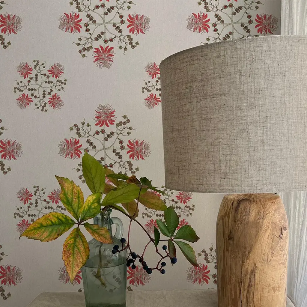 Beatrice EditProduct Code: 50AColor: NaturalRoll dimensions: 70cm x 10m (27.6in x 10.9yards)Area: 7sq.m (8.4 sq.yards)Vertical repeat: 23.33cm (9.2"in)Pattern repeat: StraightWallpaper: The designs are printed on Uncoated Non-woven 147gsm. The uncoated wallpaper has a matt finish and vibrant but gentle, muted colours.Fire rating: Fire certified for both Europe and the USA. Classified to BS En 13501-1-1:2002, class B, s1, d0Lucky Bean - Erythrina lysistemon is an African wonder tree that fertilises the soil, helps farmers time their planting with the appearance of the stunning red blossoms in Spring, makes live barbed fencing, provides black and red seeds for jewellery… As well as these uses, every part of the plant provides sustenance: the flowers give nectar to birds and bees, the leaves are eaten by creatures from rhinos to kudu, the flower buds are relished by vervet monkeys, and the bark is consumed by elephants and baboons. Even the roots are eaten by bush pigs. What a lucky bean. This design is part of The Beatrice Edit, a collaboration between biologist/designer Susy Paisley and her daughter Beatrice, who is a budding interior designer. and avowed minimalist. One day, in a conversation about their different tastes, it occurred to them to do an edit of Newton Paisley designs for people who, like Beatrice, think less is more in their interiors. Best-selling Newton Paisley designs were reimagined as one-colour 18th century toile de Jouys; favourite botanical details from other designs were reconfigured in simple airy geometrical repeats. In this, Susy and Beatrice found themselves inspired by the beautiful folk motifs of Ukrainian embroidery, and will be sending 10% of profits to a charity called Rebuild Together in Ukraine. These designs express the growing passion in interiors for honouring the natural world. Furthermore, for every roll of wallpaper sold, 100m2 of critical wild habitat is preserved through World Land Trust. This is an eco-friendly fine gicleé digitally-printed “real” wallpaper. It is printed in the UK on a natural non-woven cellulose-based substrate made from recycled materials, recycled polyester (PET) fibre and recycled wood pulp. The production process is solvent free with minimal waste and energy inputs.