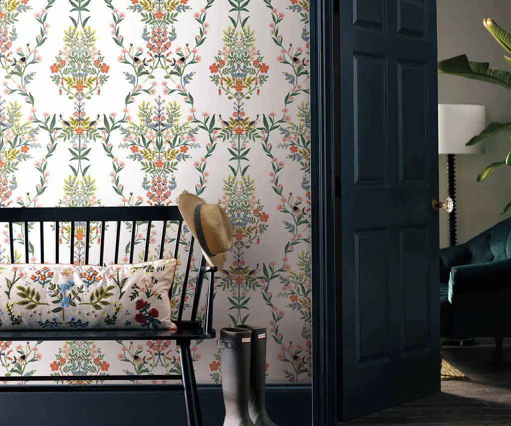 Drawing inspiration from French palace gardens, Luxembourg features mirrored medallions of florals, greenery, and the occasional bird that create a pattern that is sophisticated and timeless. This peel & stick wallpaper can easily be removed, making it perfect for rentals and accent walls. The paper is gravure printed and comes in 27 inch rolls with a 24 inch repeat. Due to the printing process, there may be color variations in different print runs. We suggest purchasing all wallpaper needed for a project at one time for the best color consistency. Unopened rolls can be returned.
